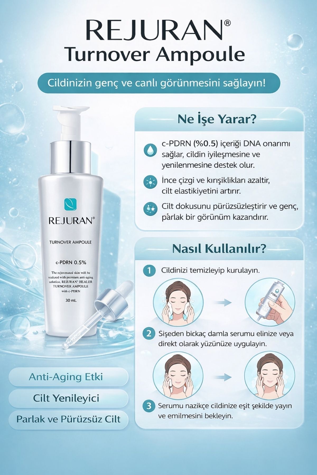 REJURAN Turnover Ampoule 30 ml c-PDRN %0.5 Cilt Yenileyici Serum ürünü ucuz fiyat, hızlı kargo imkanı ile hemen sitemizden sipariş verin.