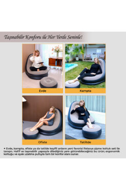 RELAXUS Şişme Koltuk ve Ayak Uzatma Pufu – Ev, Kamp, Ofis Kullanımı İçin, Pompa Hediyeli, Taşınabilir