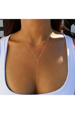 renery Kadın Tasarım Çelik Topçuk Uzun Zarif Şık Zincir Model Trend Y Kolye