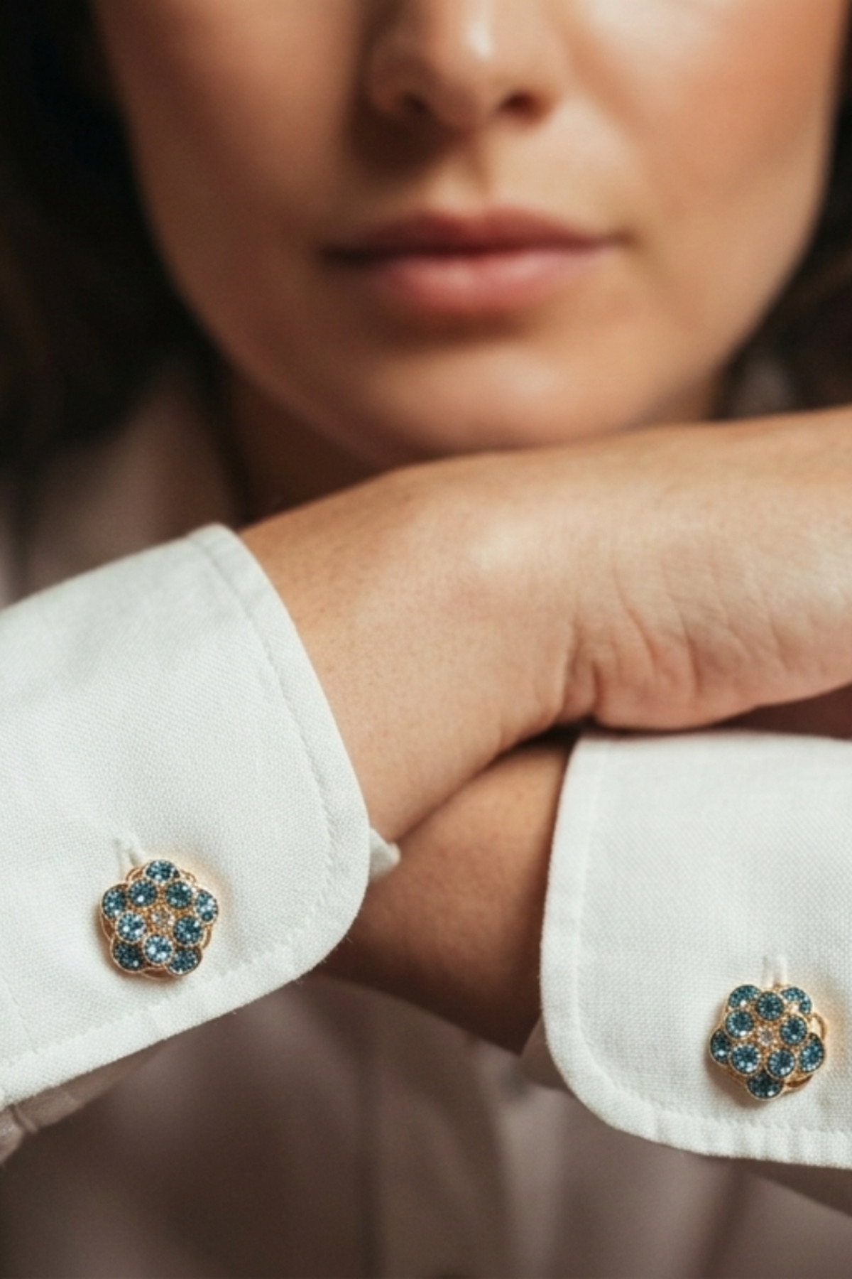 Reoona Mavi Kristalli Gold Düğme Broş, Düğme Kapağı, Kol Düğmesi