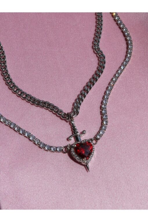 Reorah Collection Pamuk Prenses ve Avcı Su Yolu Choker – Çift Kolyesi-Gümüş Kaplama