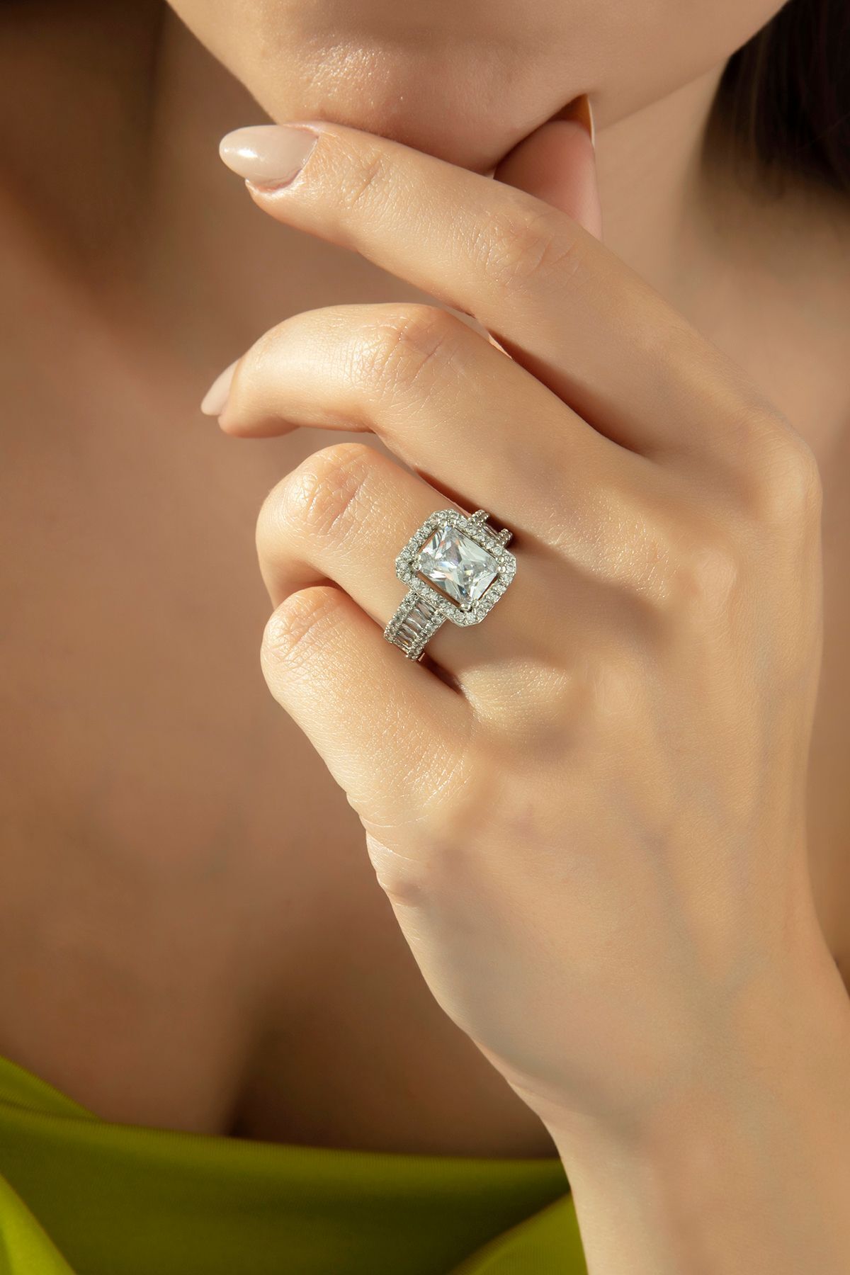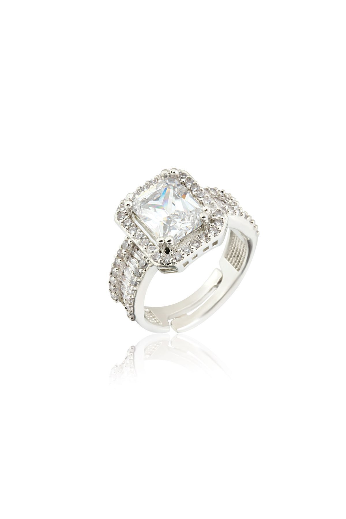Ressia Baget Zirkon Taşlı Ayarlanabilir Çelik Yüzük