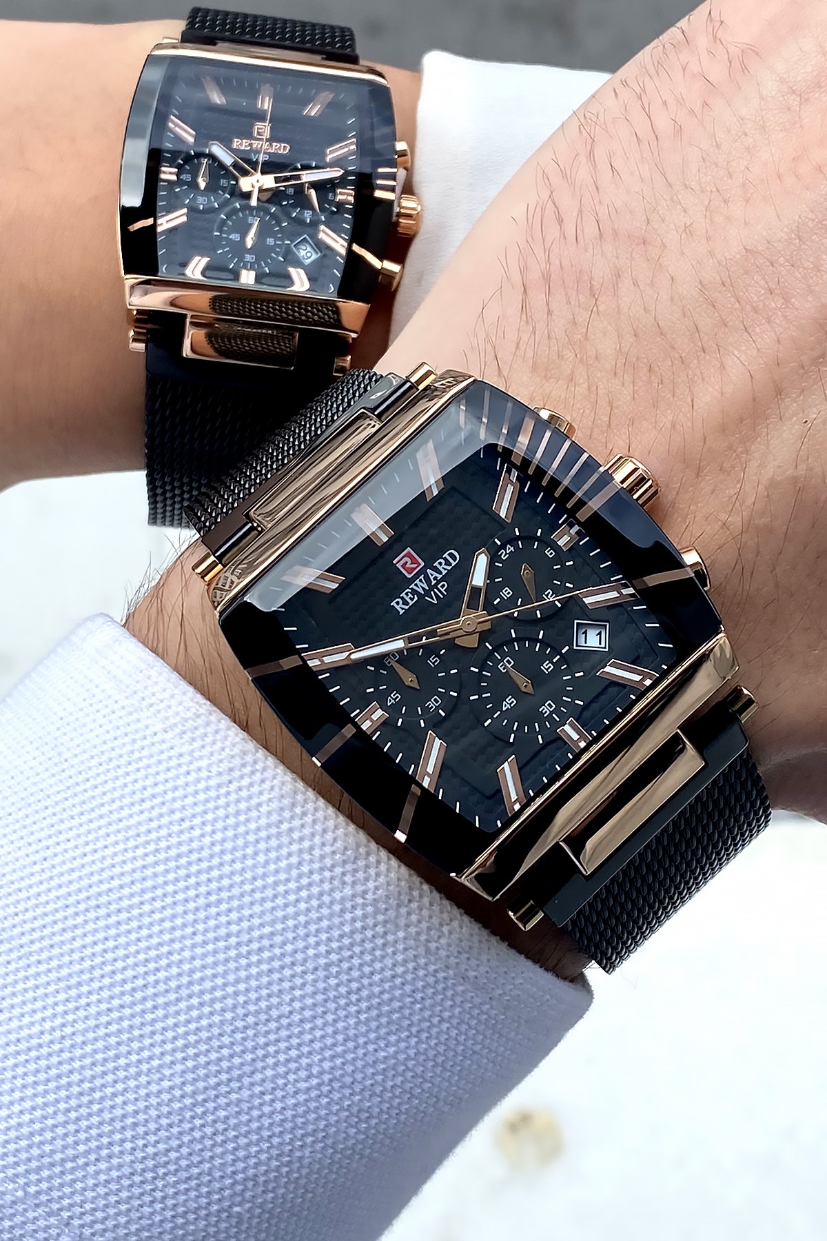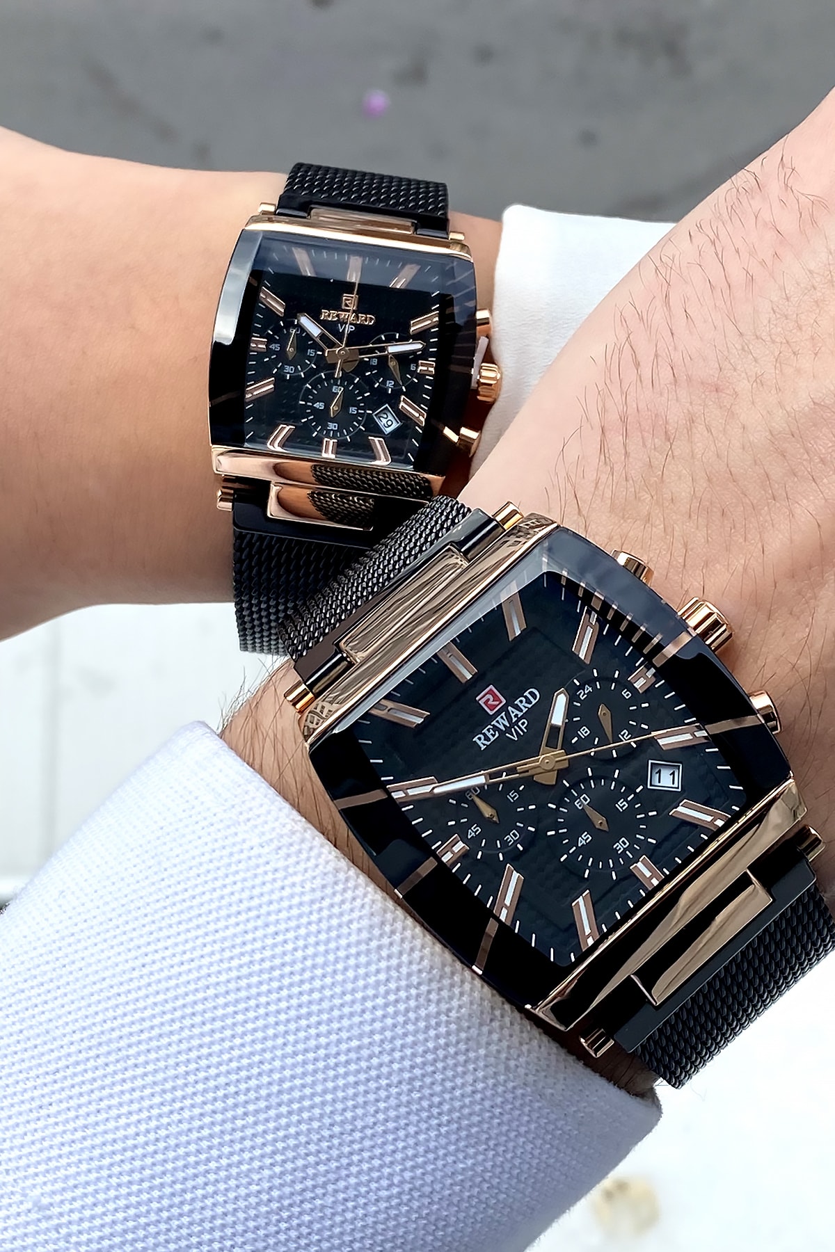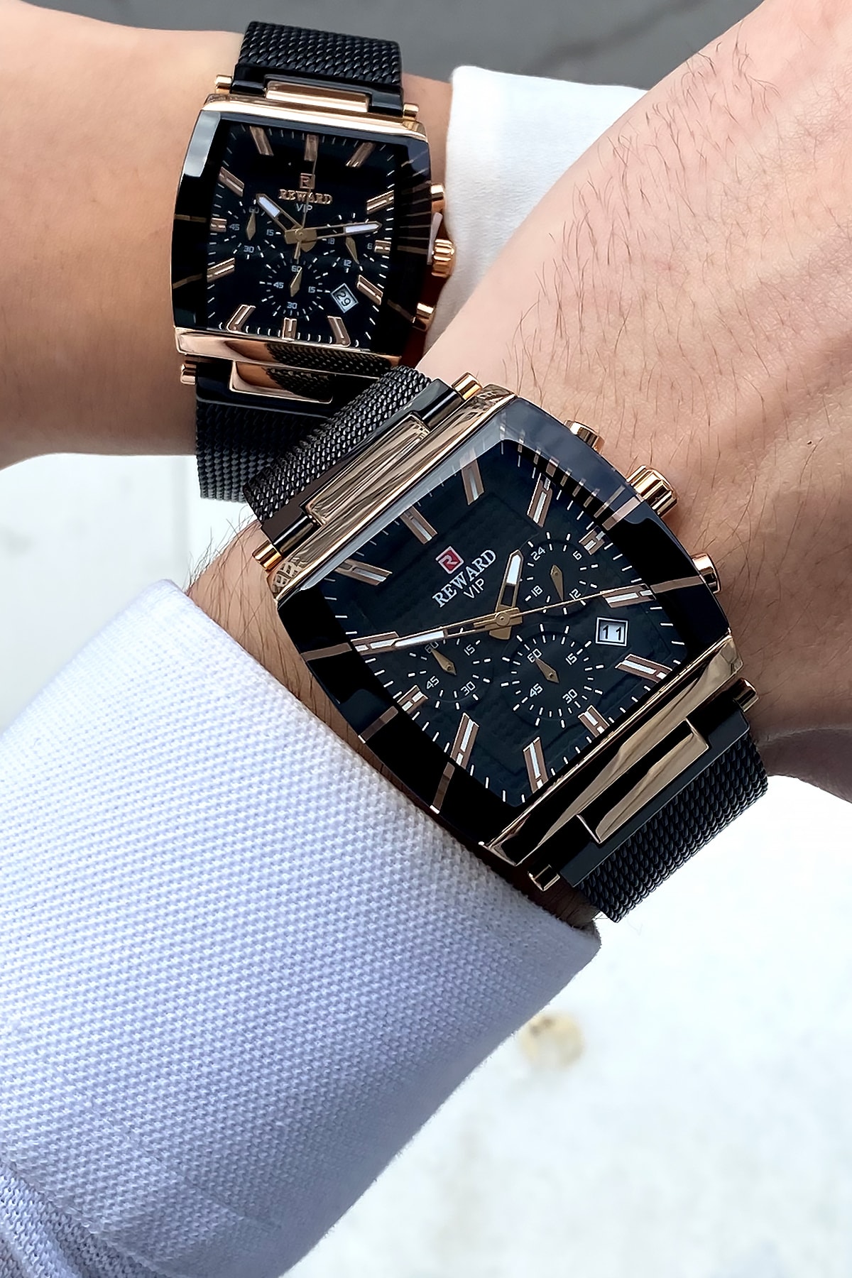 Reward Orijinal Marka Siyah Renk 24 Ay Garantili Su Geçirmez Çelik Sevgili Çiftkol Saati Bileklik Hediyeli