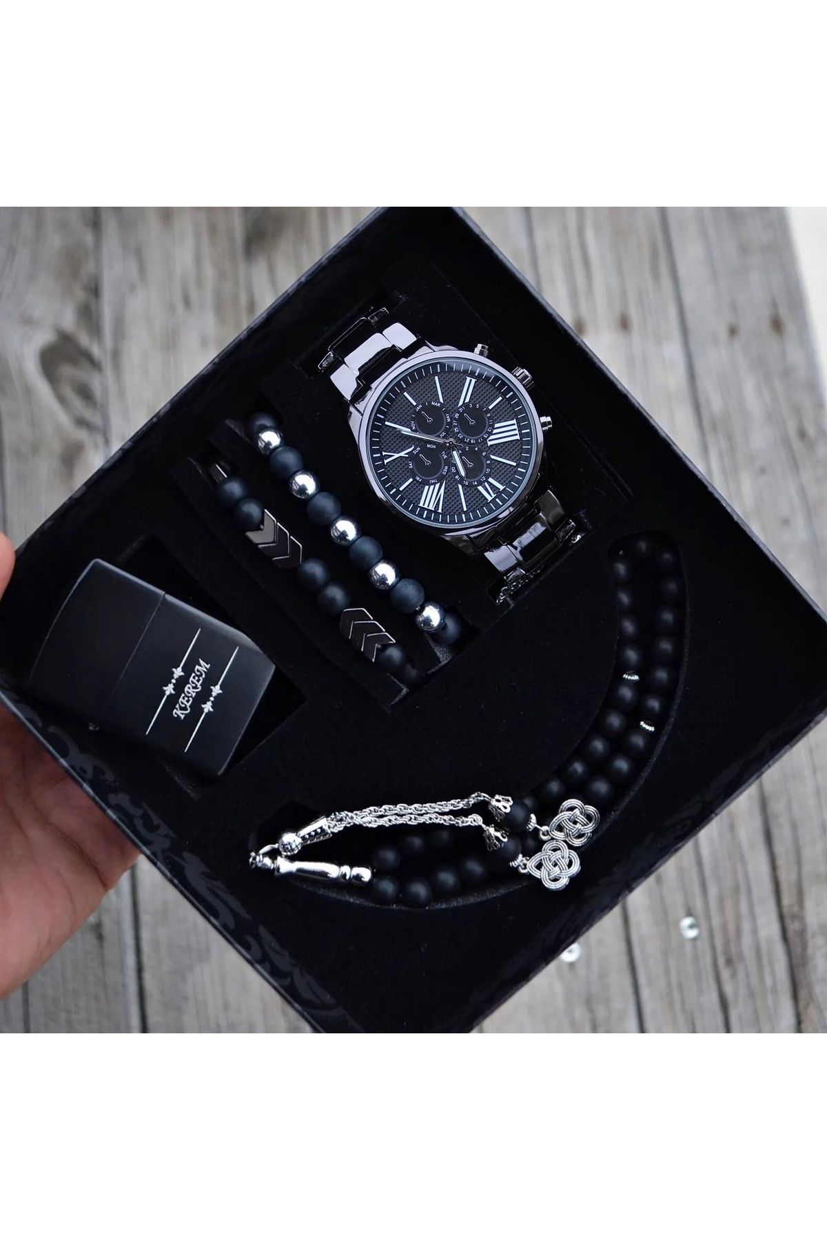 Standart beden tasarımıyla her kolda rahatça takılabilen bu set, erkeklerin tarzını tamamlıyor.