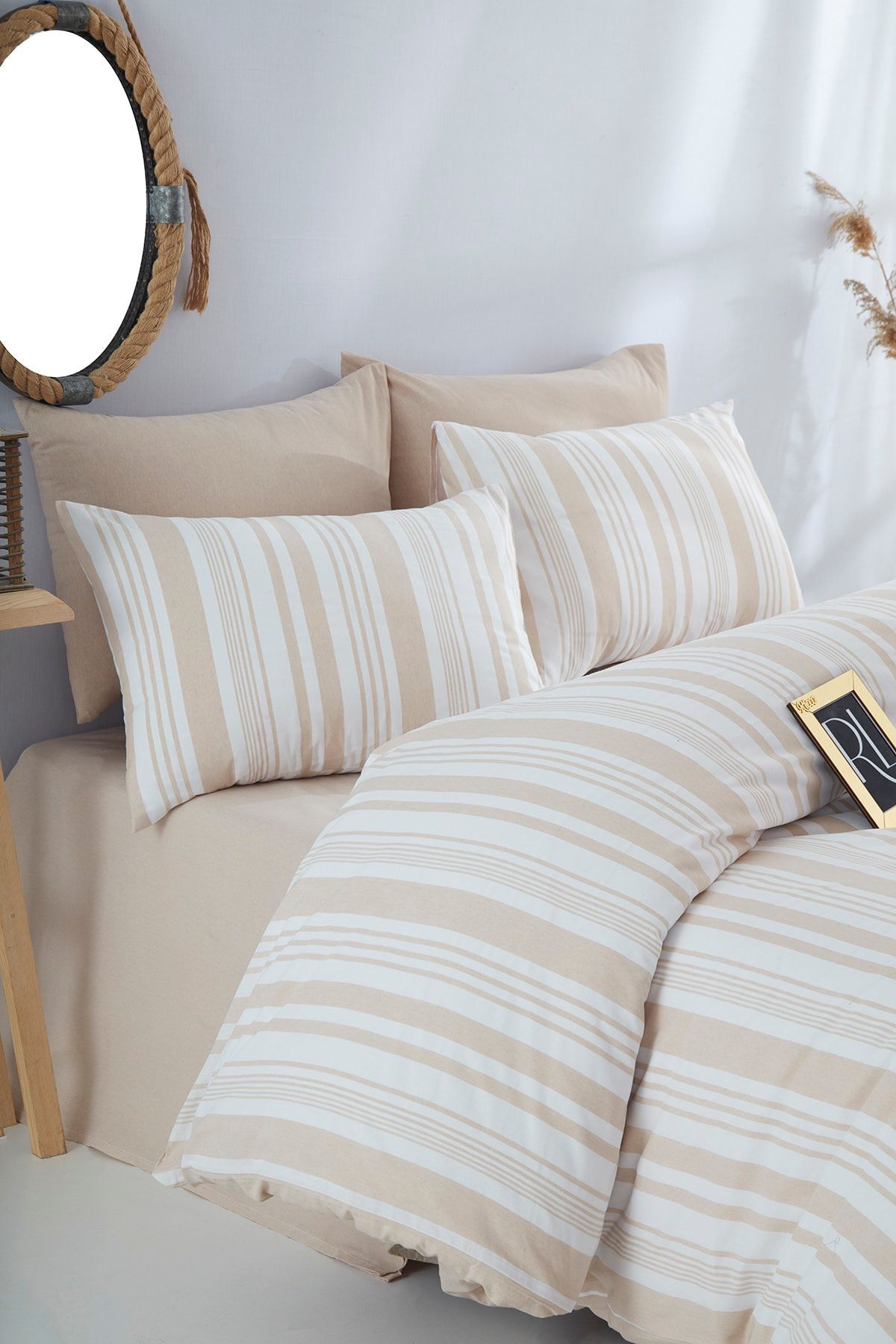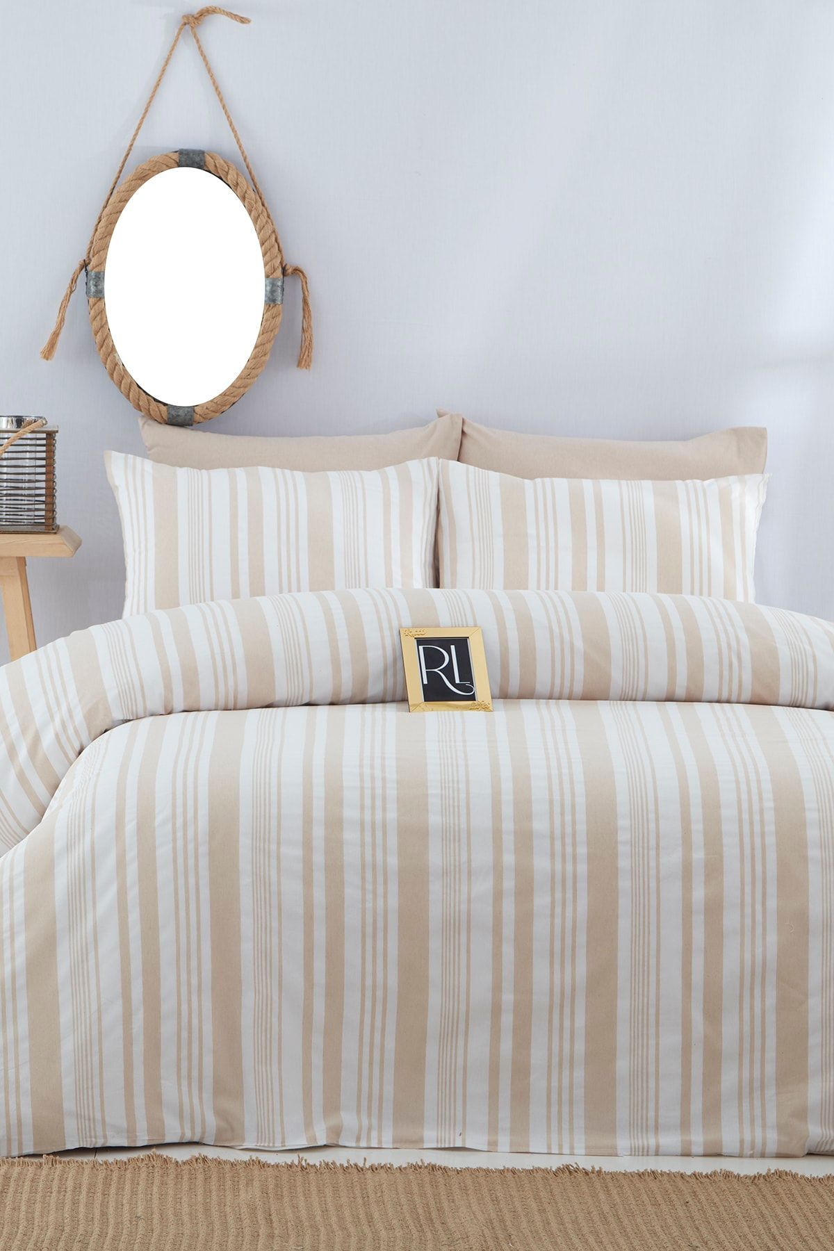 Ricco Lifes Bohem Bej Çizgili Çift Kişilik Nevresim Seti