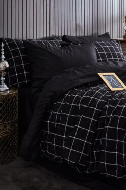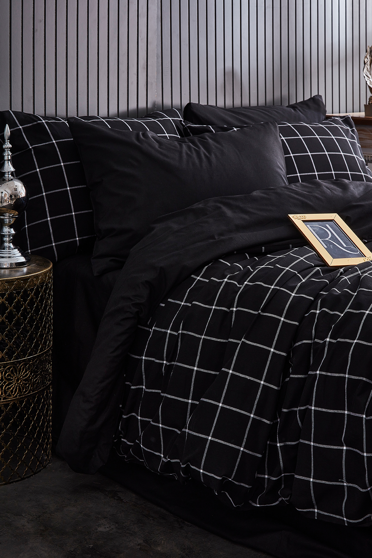 Ricco Lifes Siyah Ekoseli Tek kişilik Pamuklu Çarşaflı Nevresim Takımı