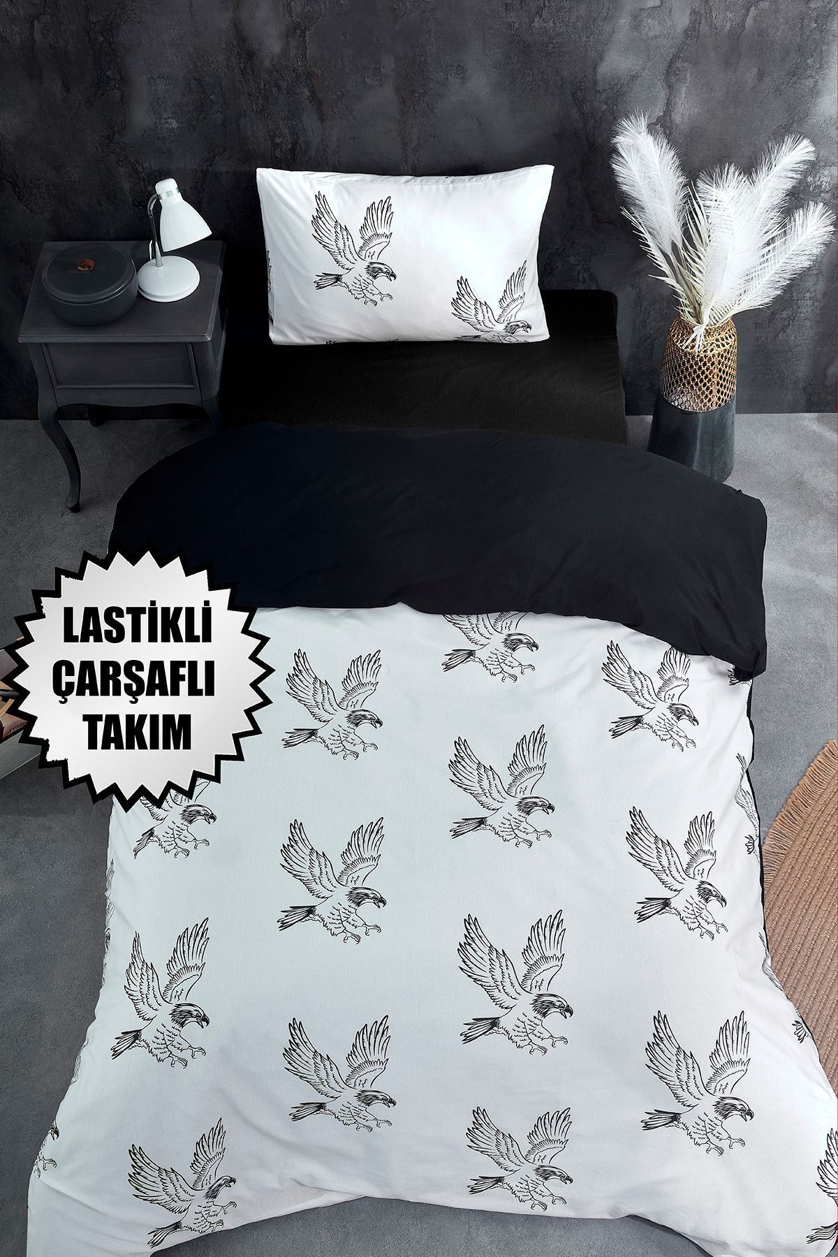 Ricco Lifes Taraftar Kara Kartal Tek Kişilik Lastikli Çarşaflı Pamuklu Nevresim Takımı