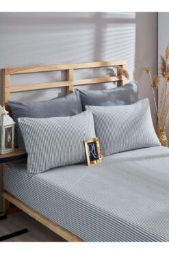 İQON Lastikli Çarşaflı Nevresim Takımı Çift Kişilik Petrol – Gri