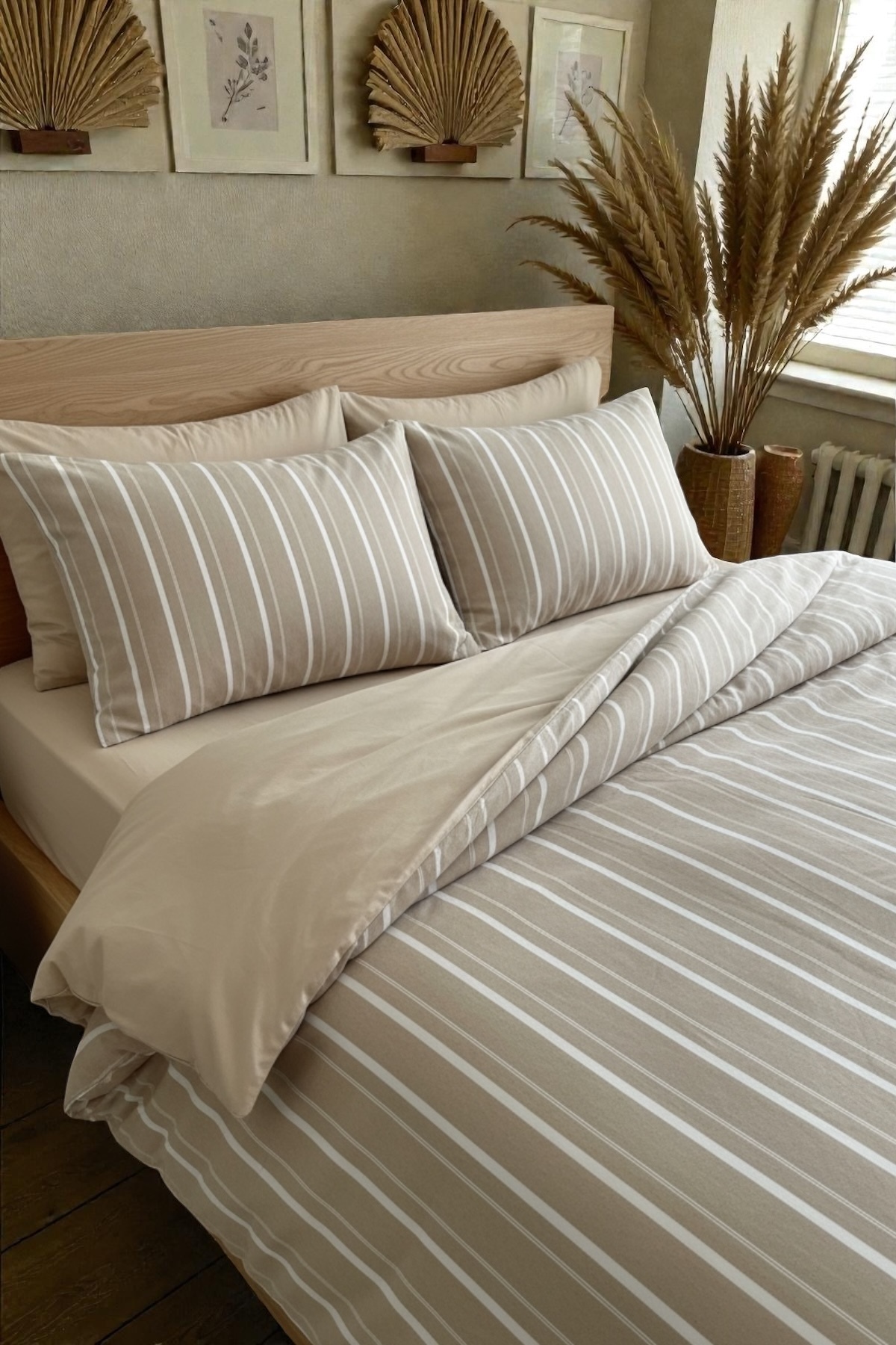 BESTİNA GOLD Harmony Hues İpliği Boyalı Doğal Çift Kişilik Nevresim Takımı (Çarşafı Lastikli)