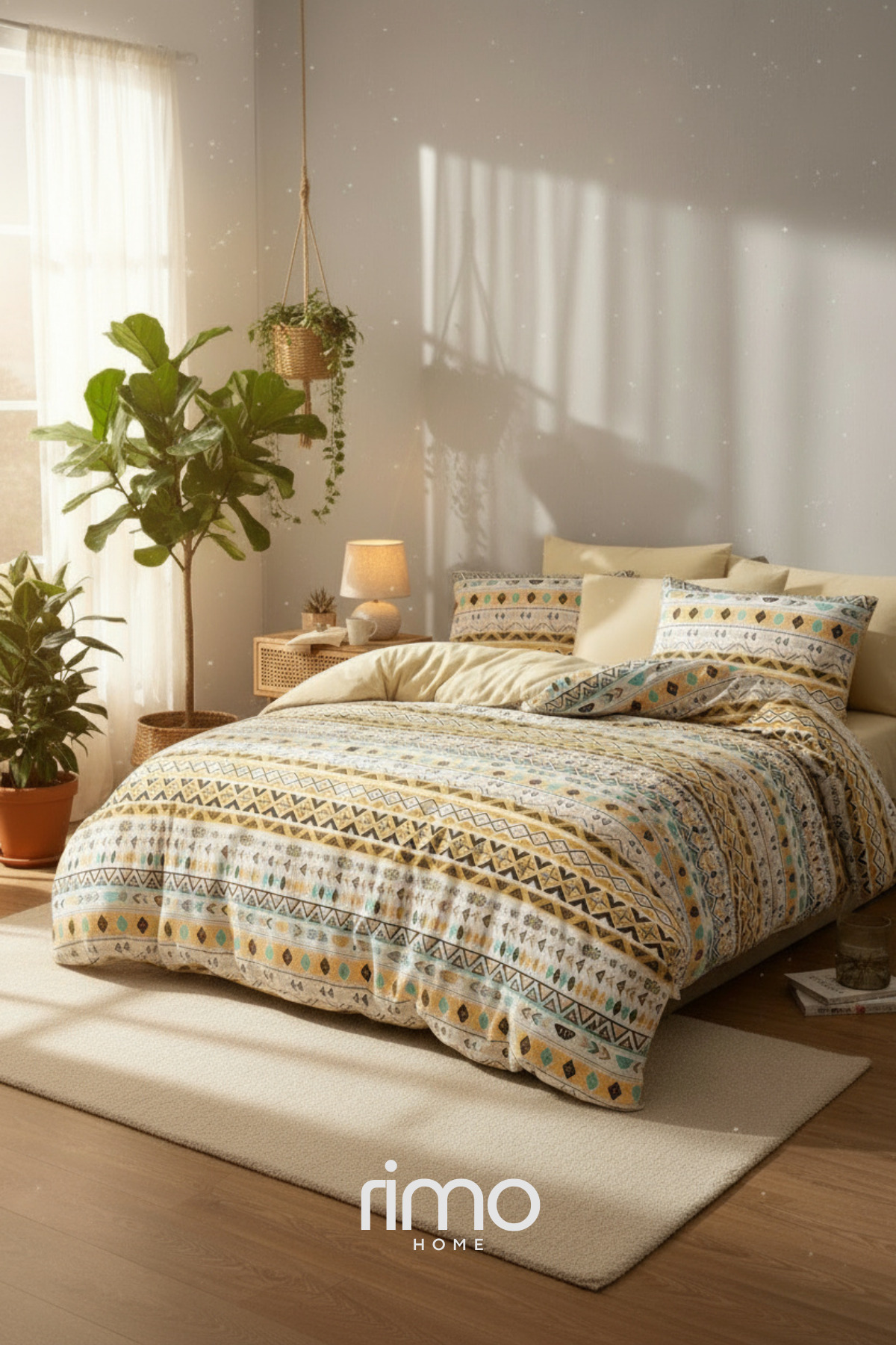 Rimo Home Çift Kişilik Otantik Sarı Nevresim Takımı Ranforce