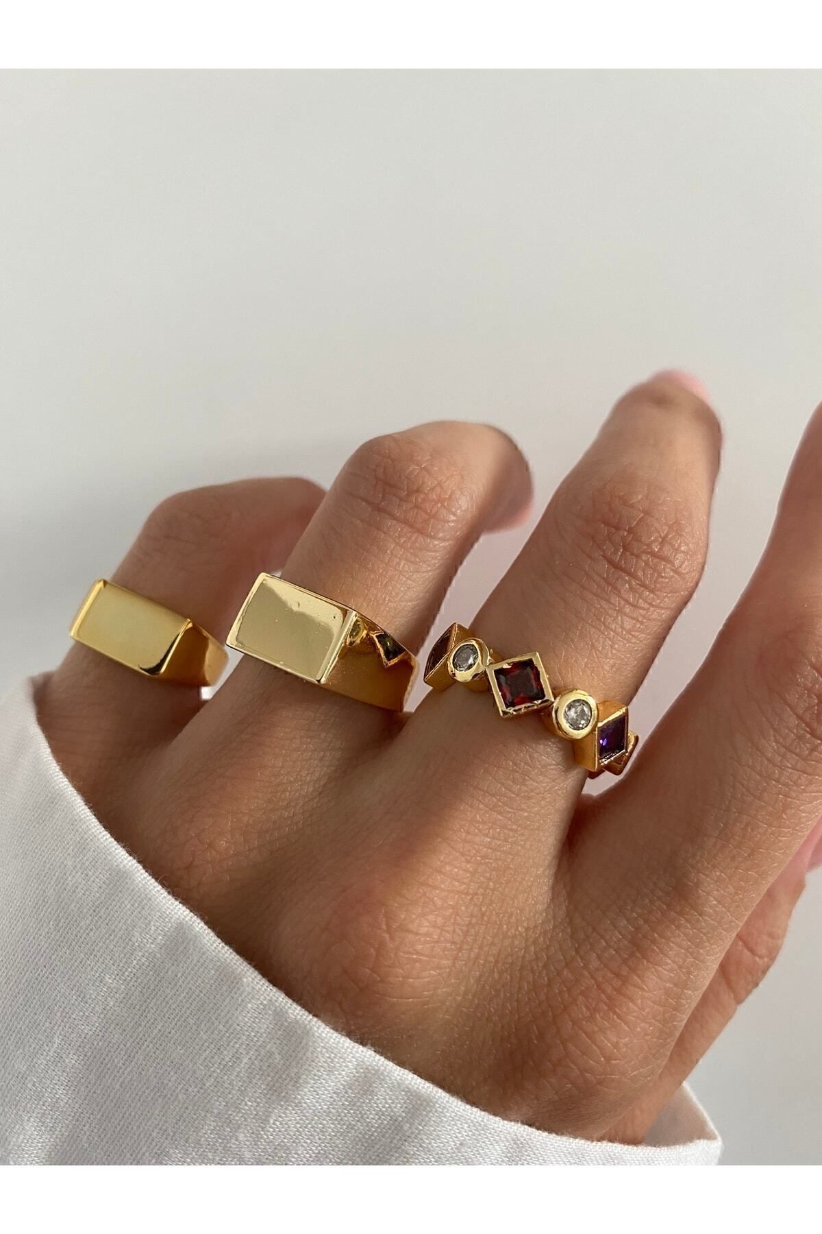 ringbox Gold Dörtgen Serçe Parmak Yüzüğü
