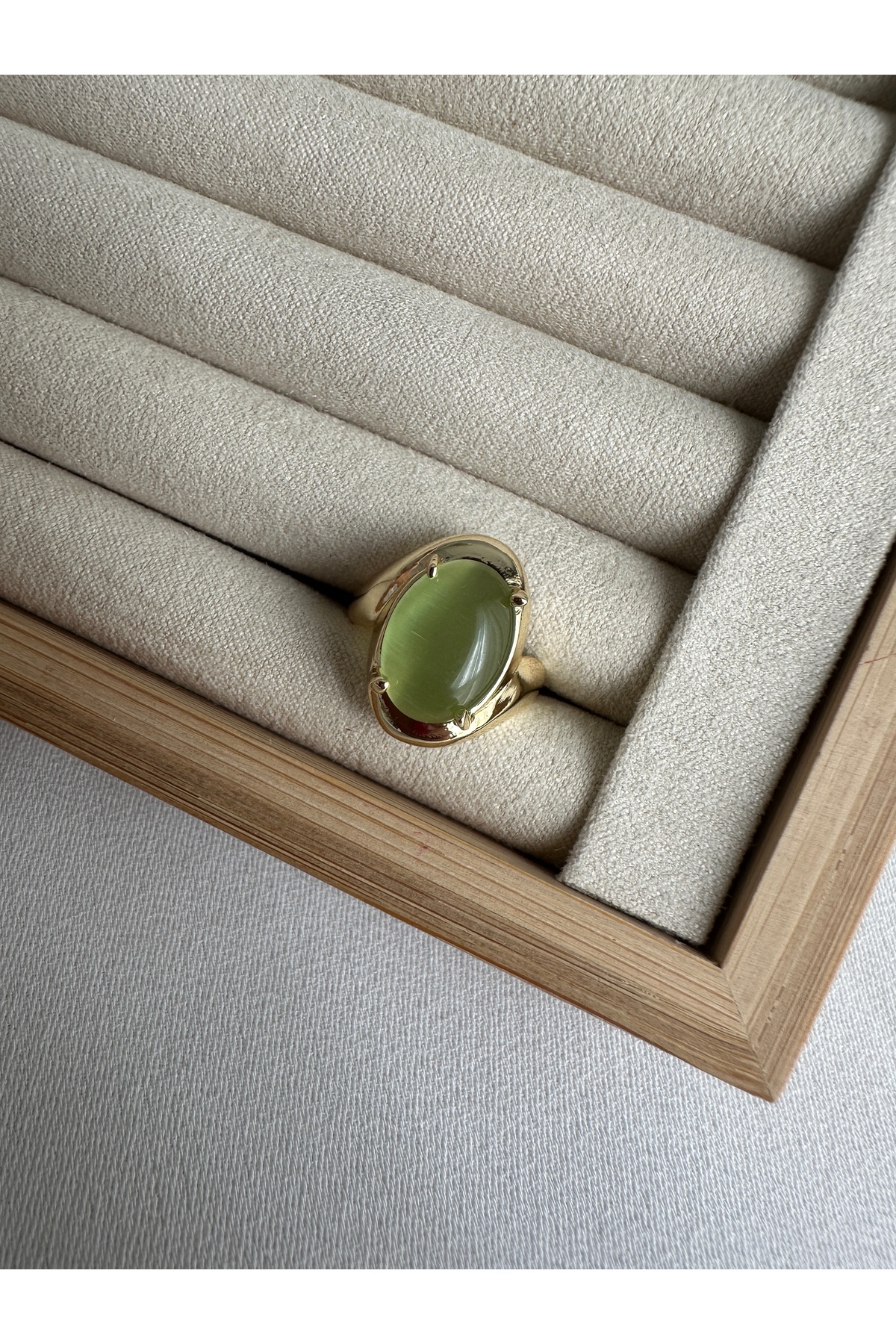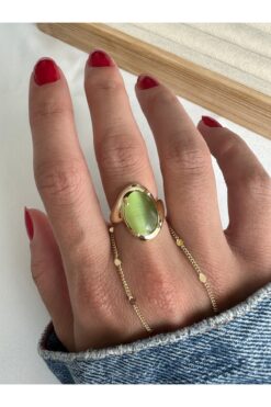 ringbox Yeşil Kedi Gözü Taşlı Yüzük