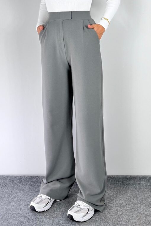 Ritnice Line Kadın Likralı Cırt Kapama Gri Palazzo Pantolon