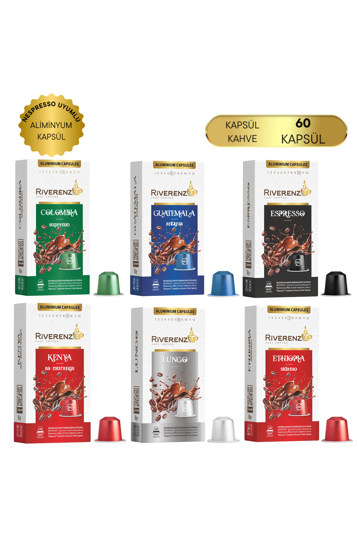 Riverenza Alüminyum Nespresso® Uyumlu Yöresel Kapsül Kahve 60 Kapsül ürünü ucuz fiyat, hızlı kargo imkanı ile hemen sitemizden sipariş verin.