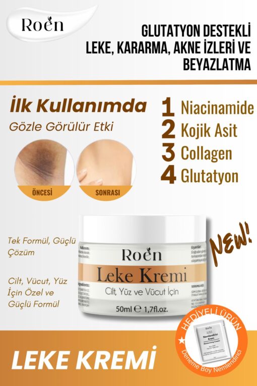 Roen Cilt Beyazlatıcı, Leke Kremi, Kararma, Akne, Güneş Lekeleri, Glutatyonlu Beyazlatıcı Leke Krem 50ml