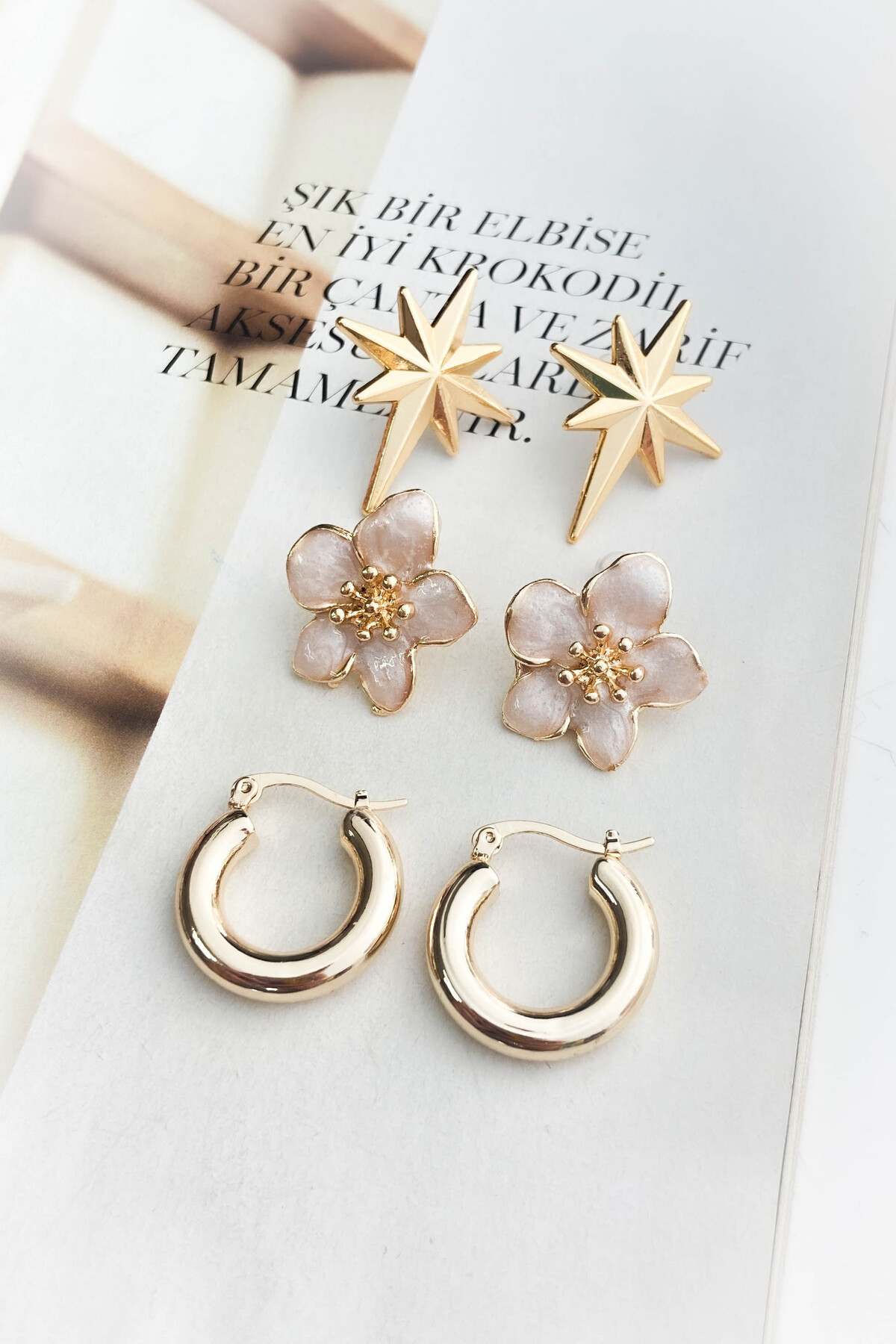roshel 3 Çift Küpe Seti,Kuzey Yıldızı,Lotus Çiçek,Halka Küpe ürünü ucuz fiyat, hızlı kargo imkanı ile hemen sitemizden sipariş verin.