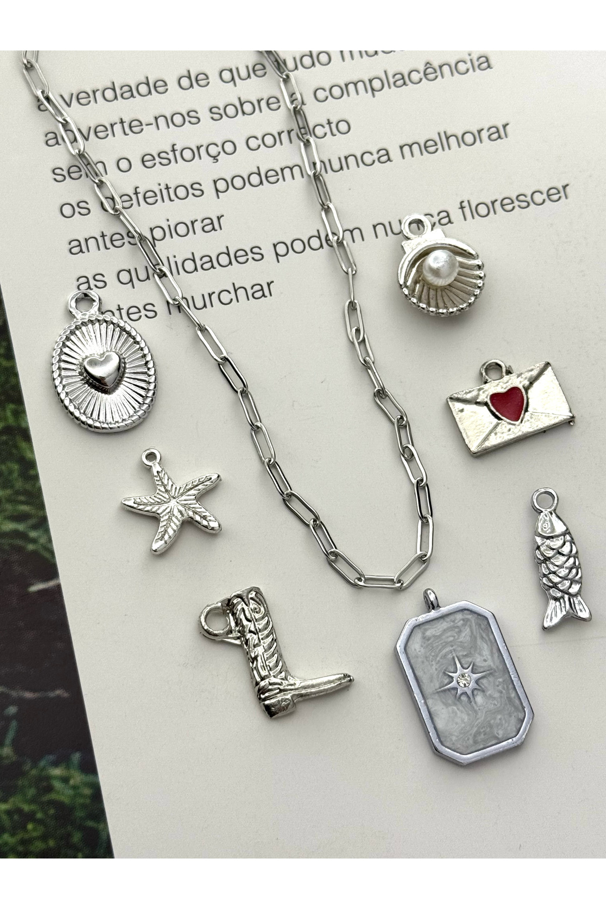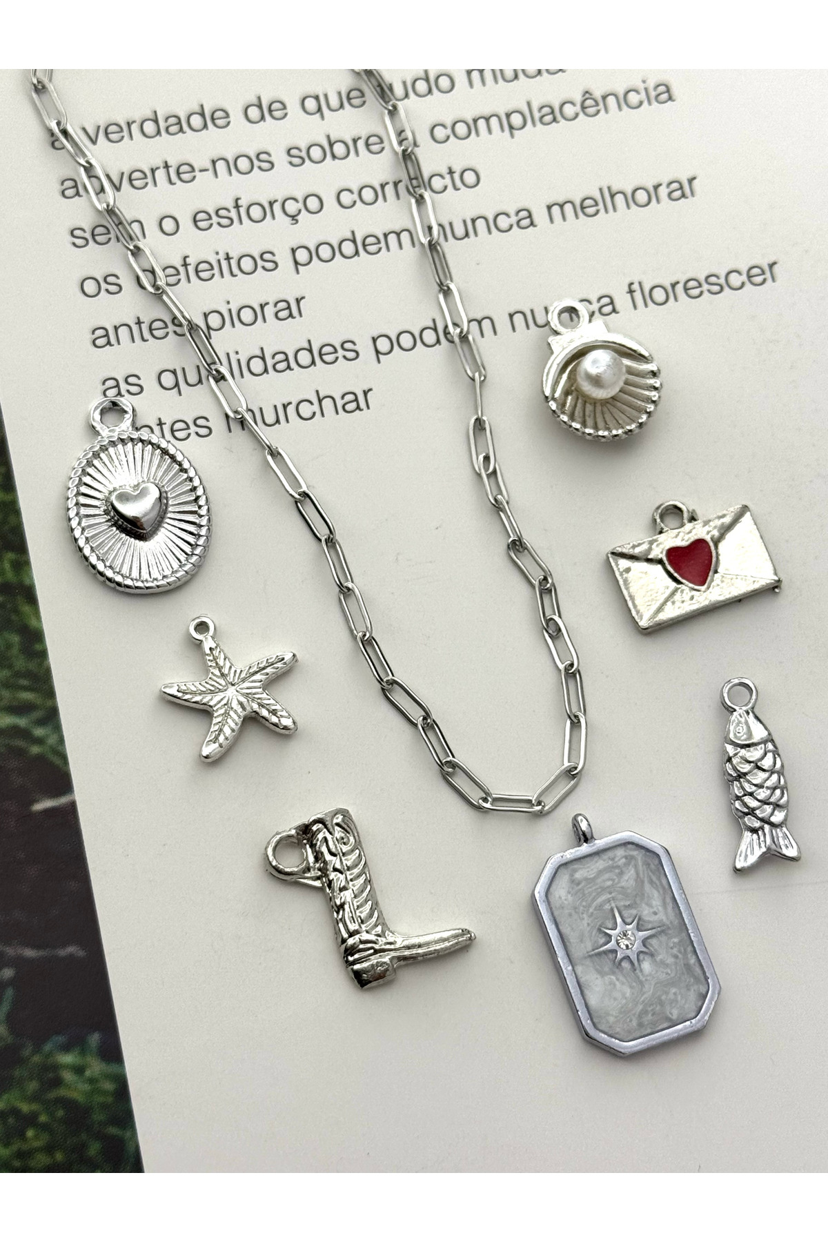 roshel Çelik Ataç Zincir ve 7 Adet Charm Kolye Yapım Seti 10 Adet Çelik Halka Gönderilmektedir