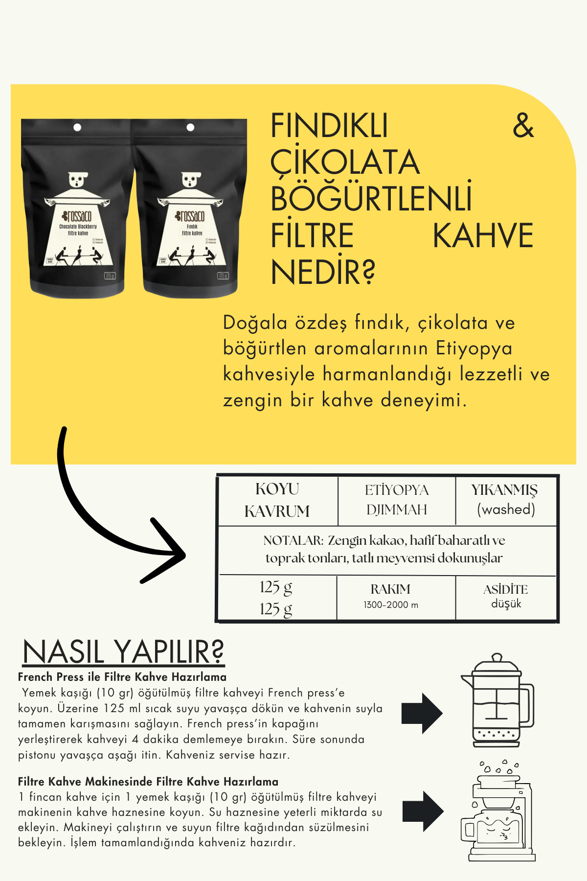 Rossaco Aromalı Filtre Kahveler Chocolate Blackberry Fındıklı 125 gr 2’li Paket