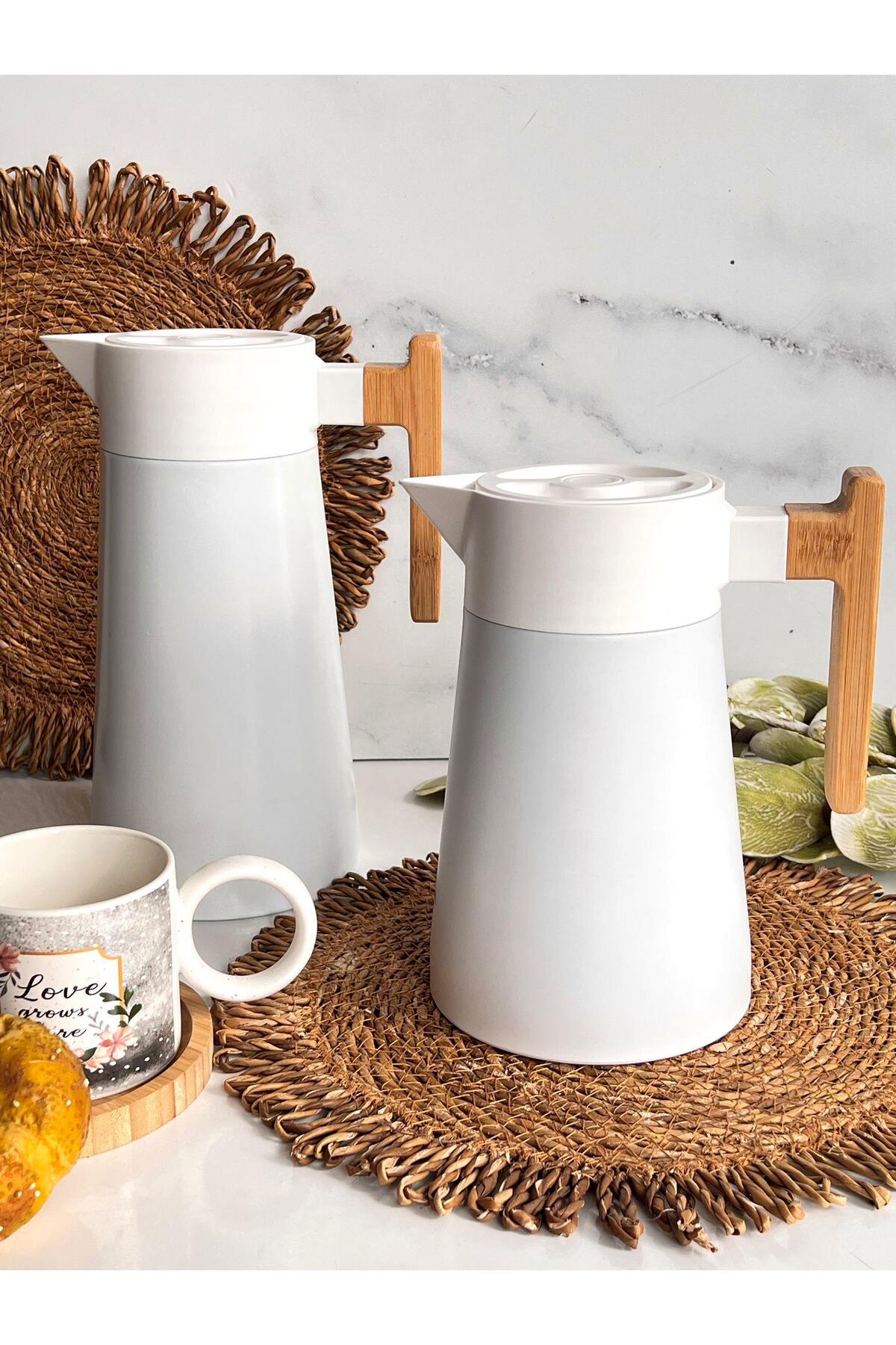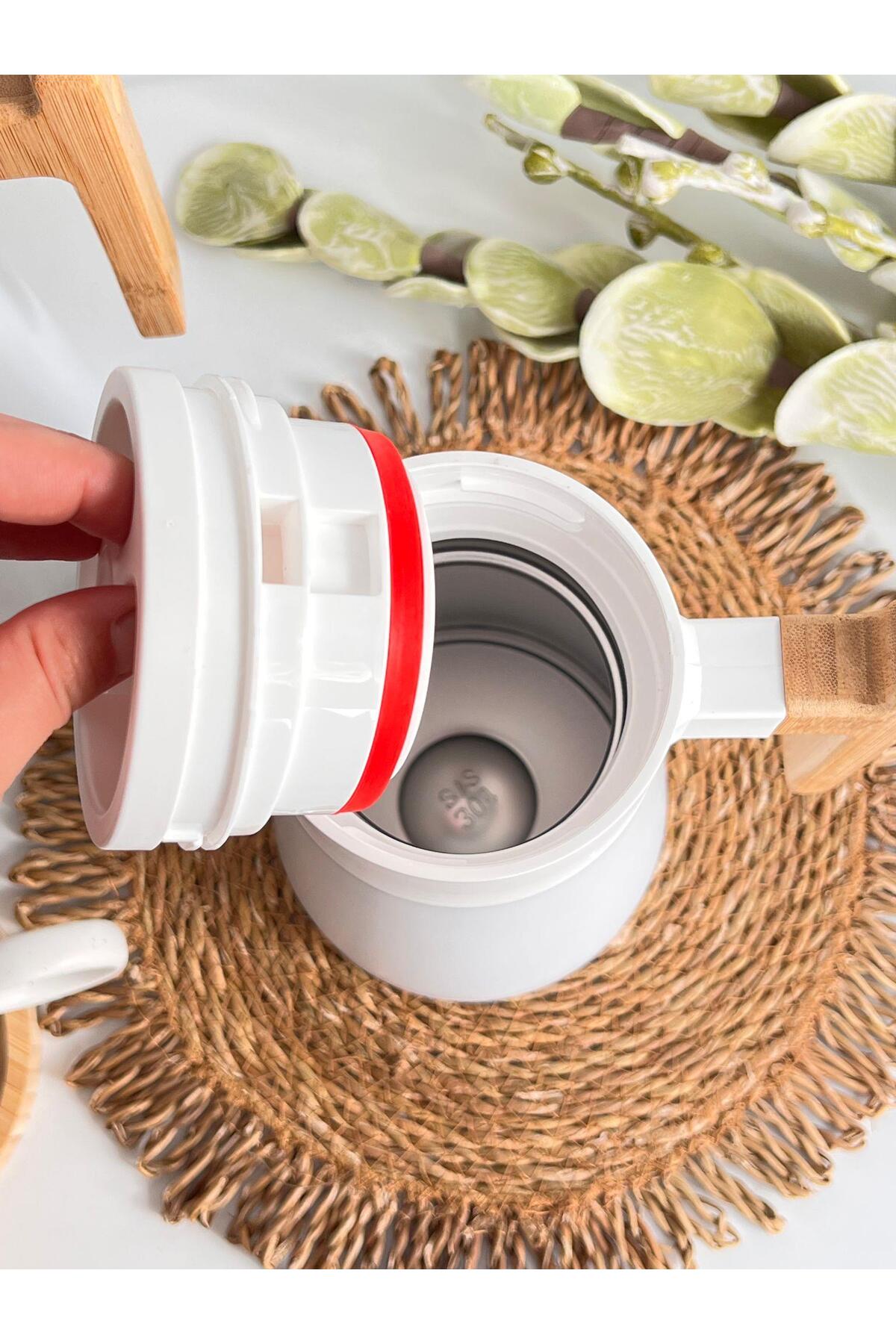 ROSSEV North Bambu Saplı Çelik Termos Beyaz 2’Li
