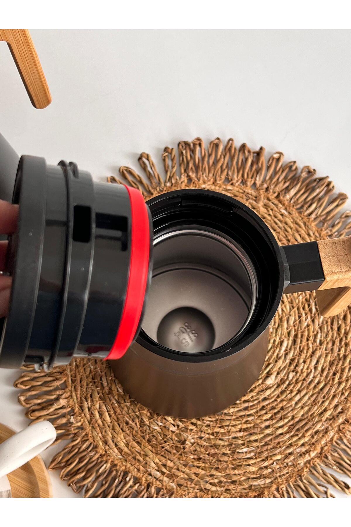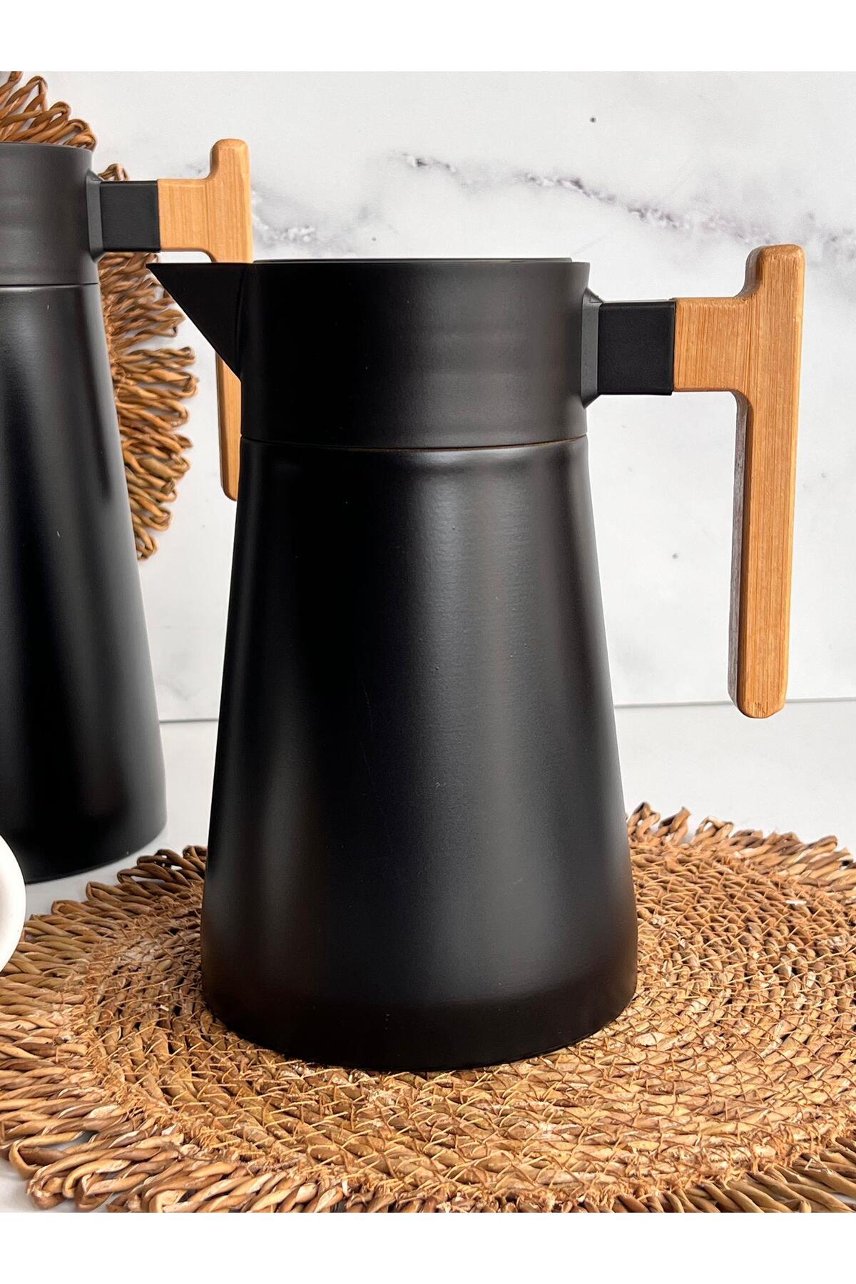 ROSSEV North Bambu Saplı Çelik Termos Siyah 2’Li