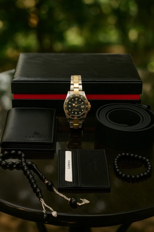 Eyiser Store Kişiye Özel Saat Seti İsim Yazılı Çakmak Tesbih Bileklik Takvimli Saat Siyah Kutulu Şık Kombin