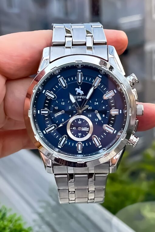 S.POLO Gümüş Beyaz Lacivert Kadran Erkek Kol Saati Bileklik Hediye