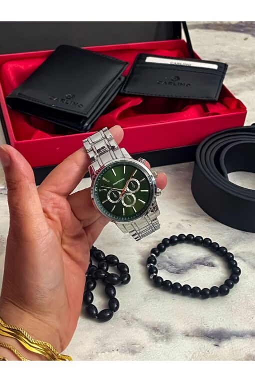 S.POLO Set Kombin Erkek Saat Kartlık Kemer Tespih Çakmak Bileklik Lüx Deri Kutu