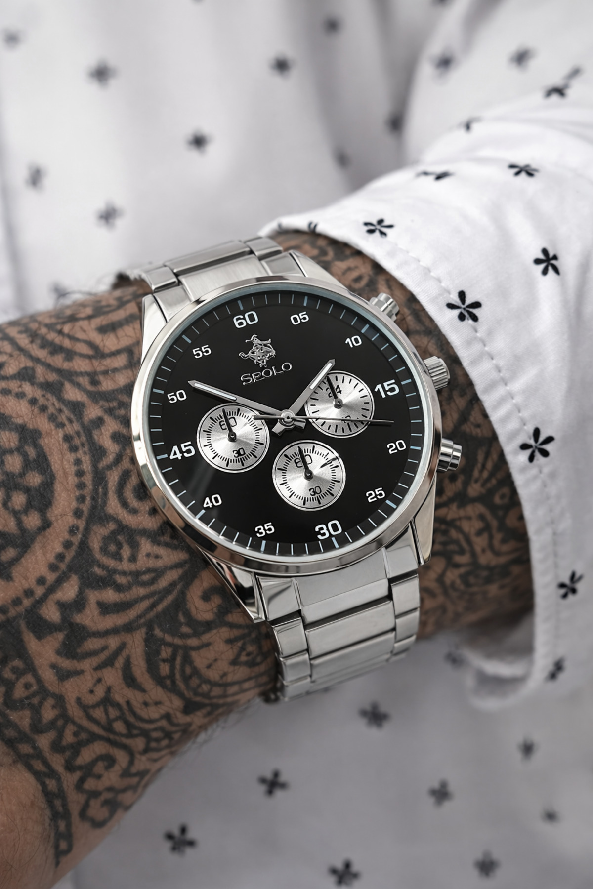S.POLO SİYAH Kadran Erkek Kol Saati Yeni Sezon Bileklik Heidyeli