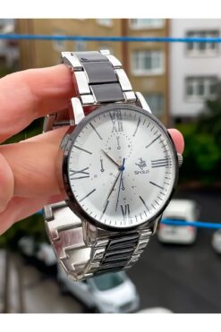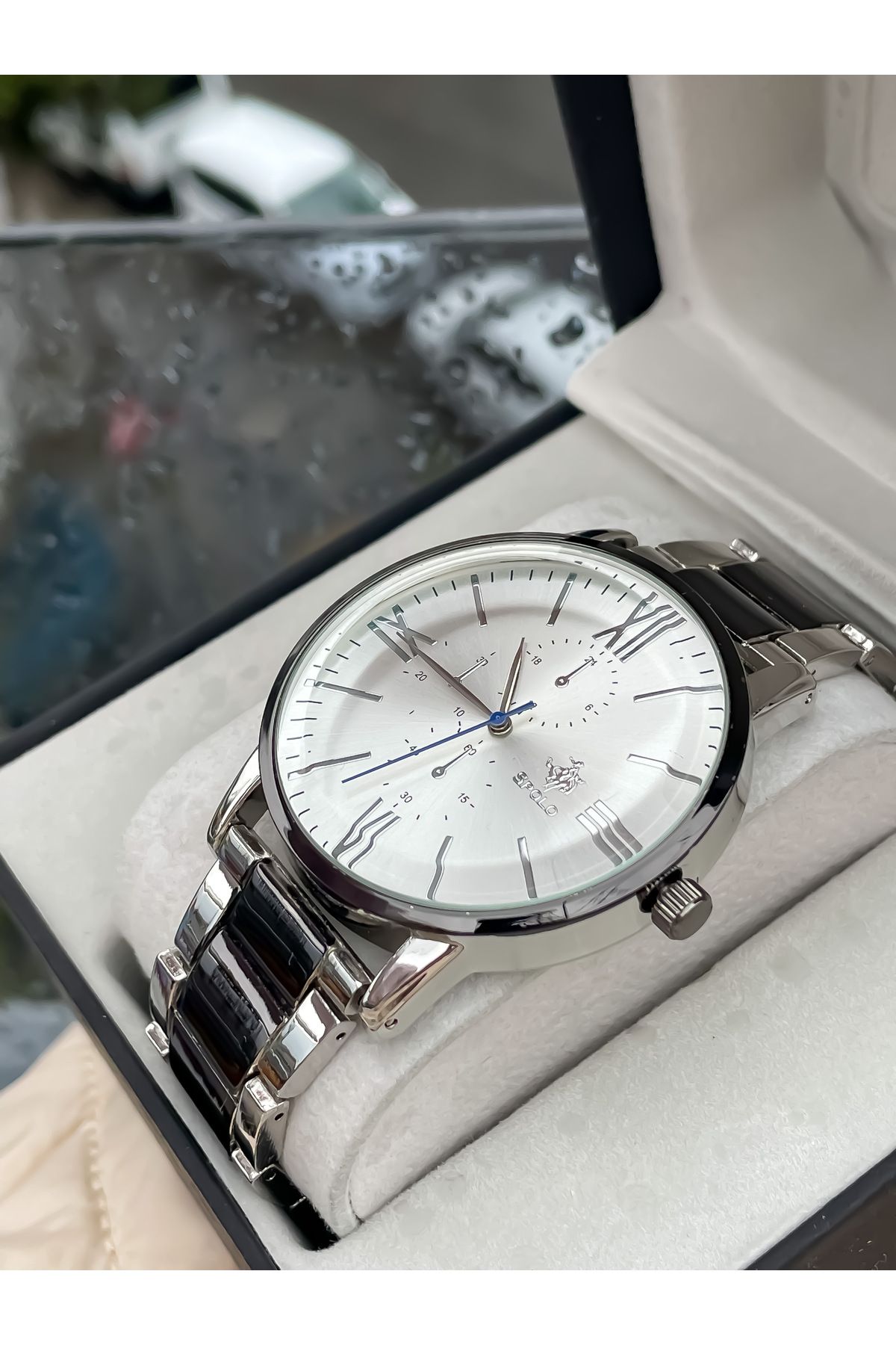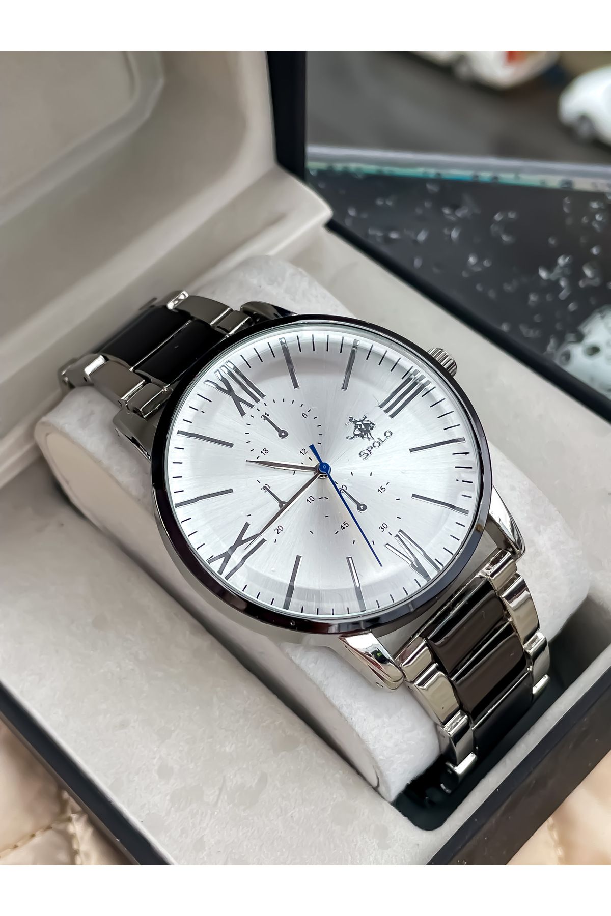 S.POLO Yeni Sezon Gümüş Renk Metal Erkek Kol Saati Bileklik Hediyeli Babalar Günü Hediyesi
