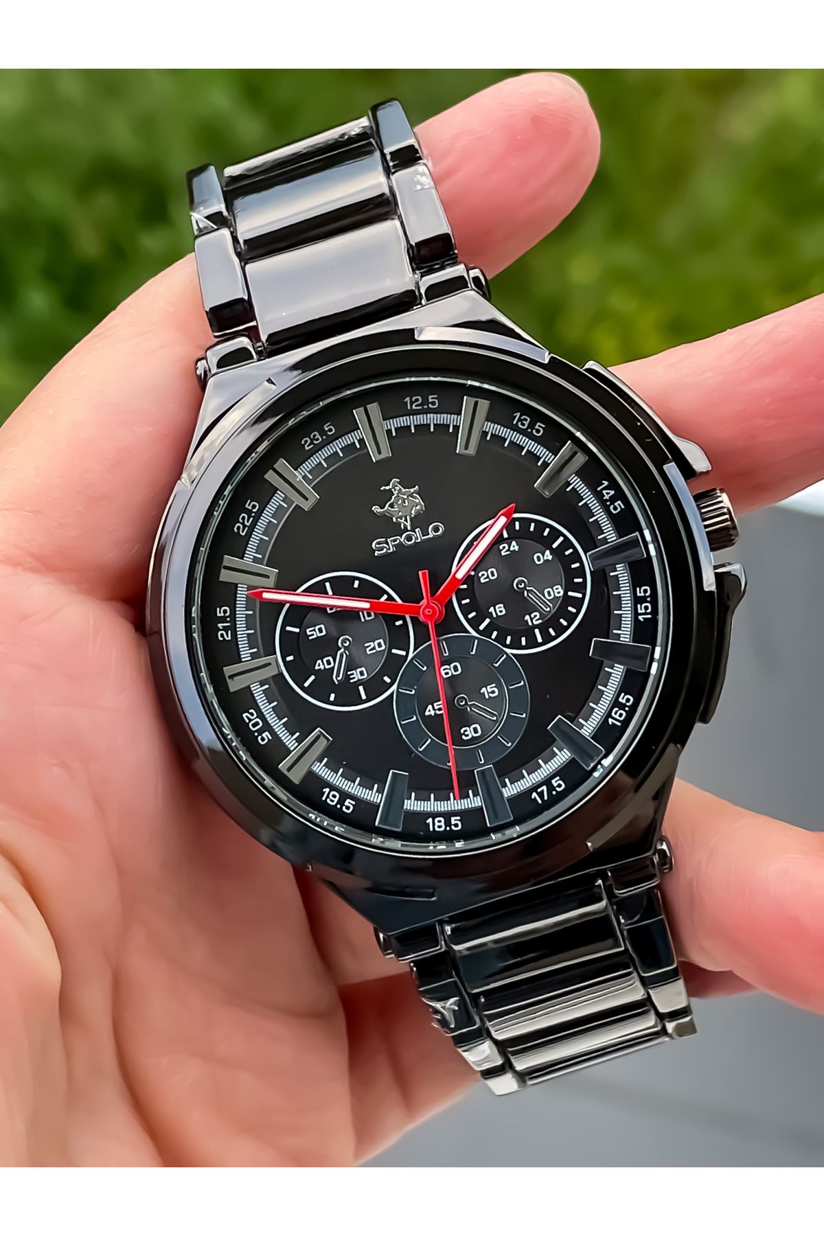 S.POLO Yeni Sezon Siyah Renk Metal Kordon Erkek Kol Saati Bileklik Hediyeli Babalar Günü Hediyesi