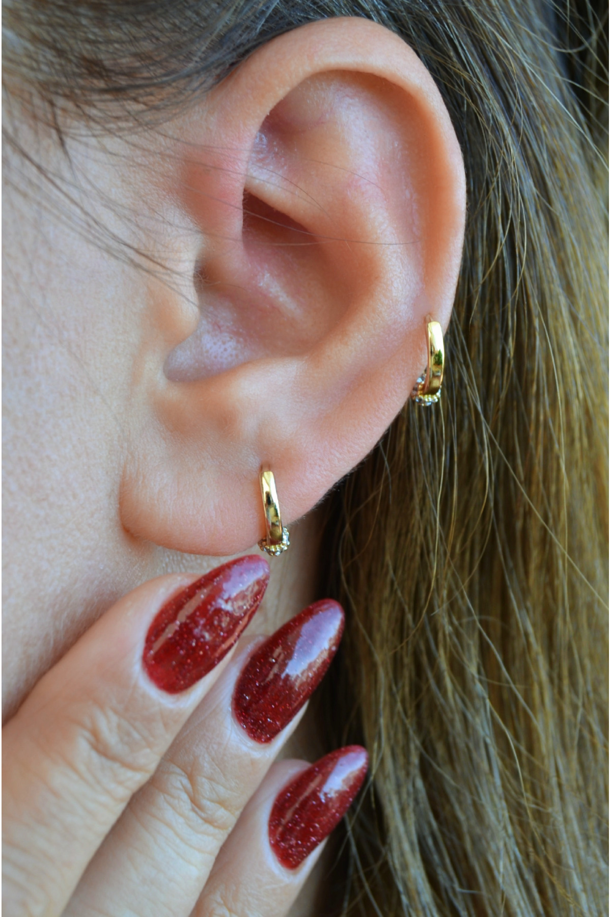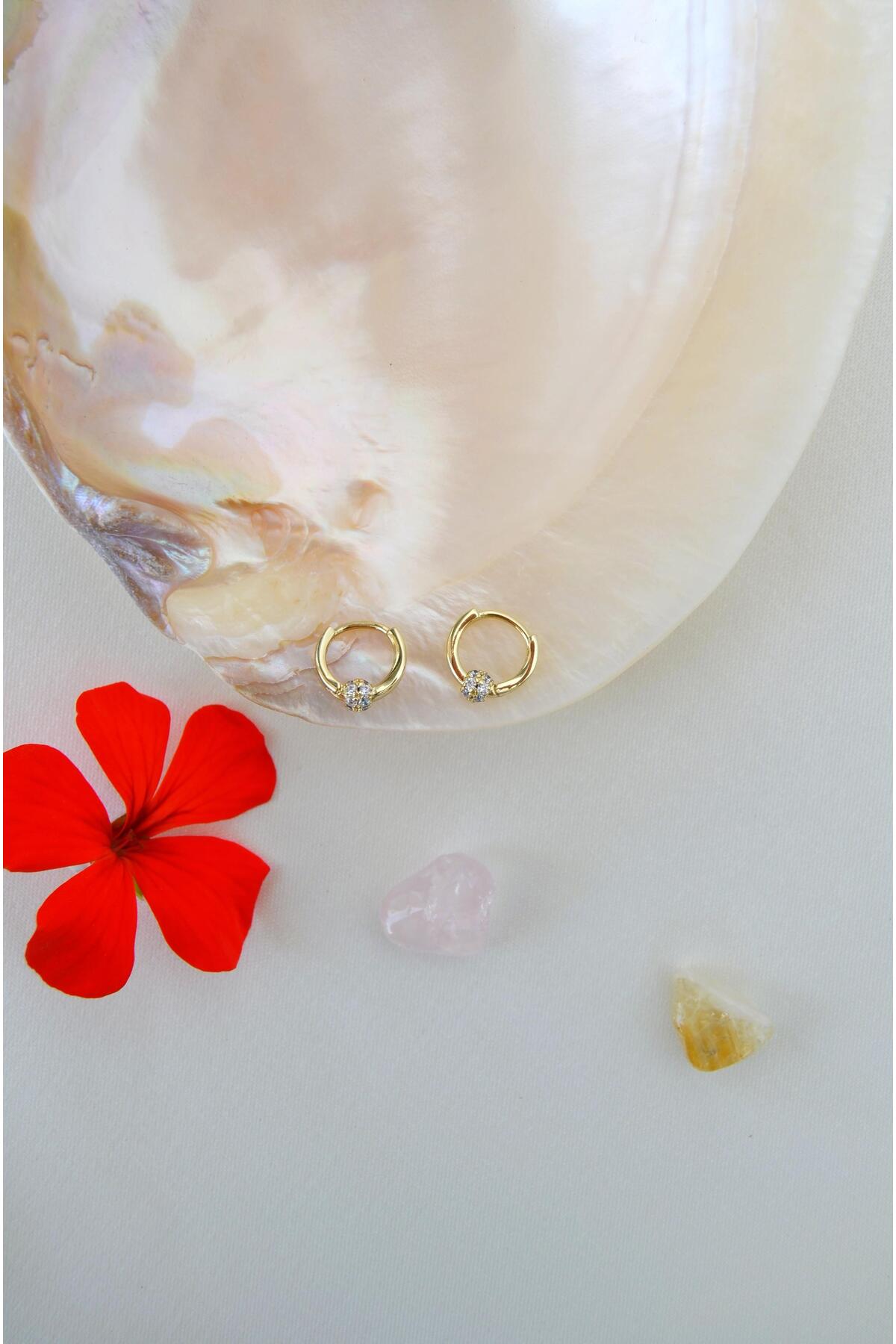 Sacce Scarves&Accessories 14K Altın Kaplama Zirkon Taşlı Mini Halka Küpe – 8 mm Hipoalerjenik