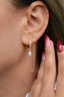 Sacce Scarves&Accessories Damla Taş Detaylı Zincirli Çift Halkalı Küpe (Tek Adet)