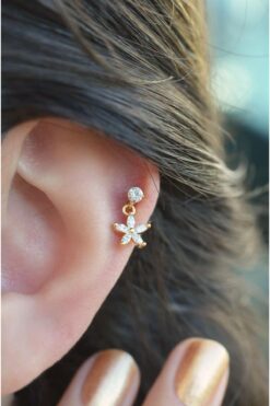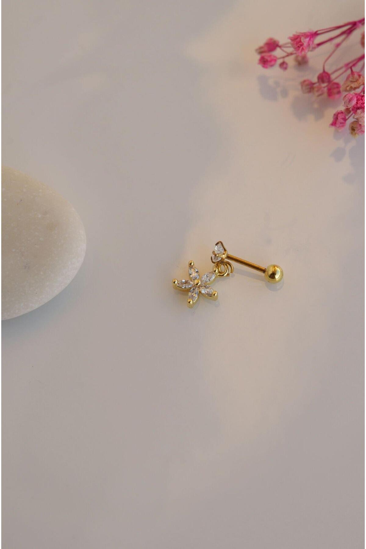 Sacce Scarves&Accessories Gold Çiçek Sallantılı Piercing Helix Kıkırdak