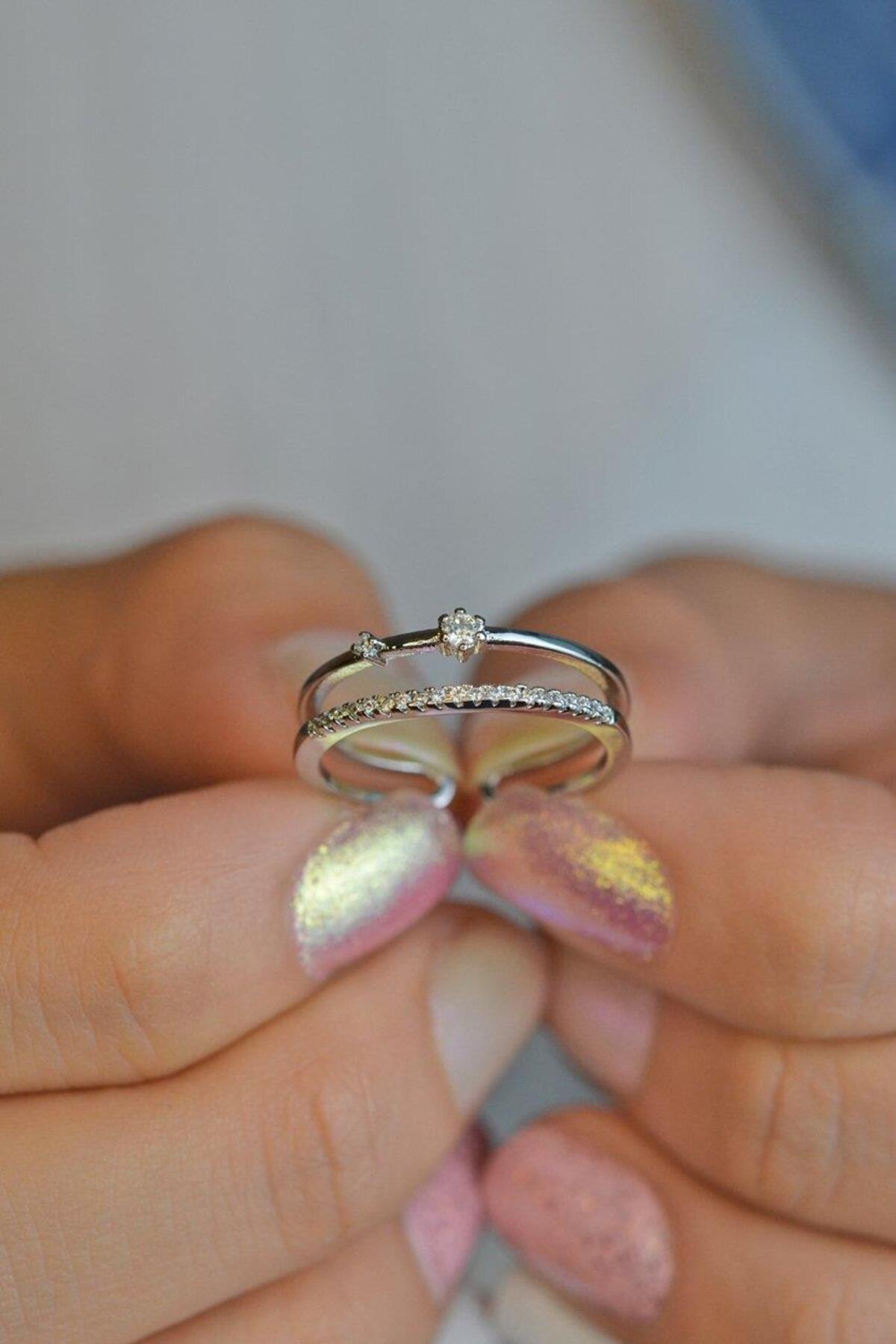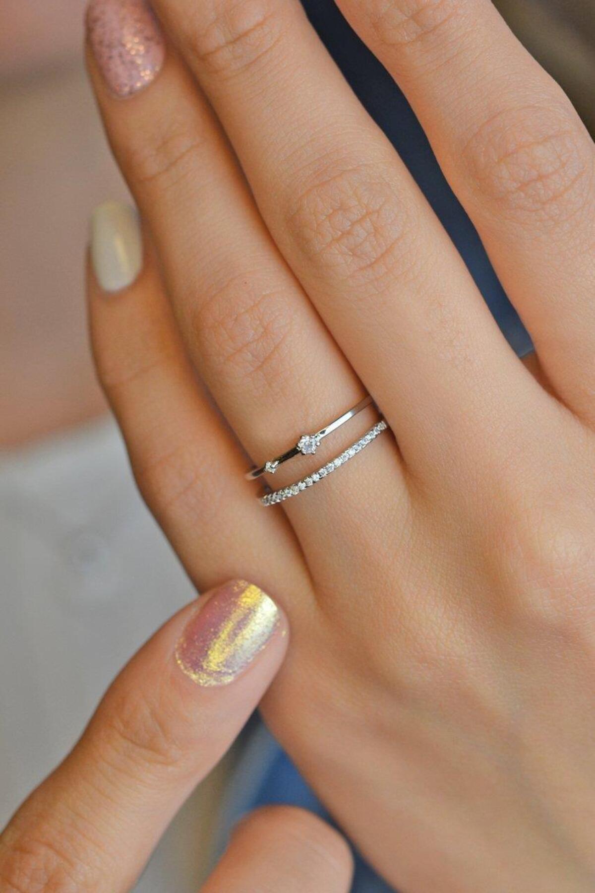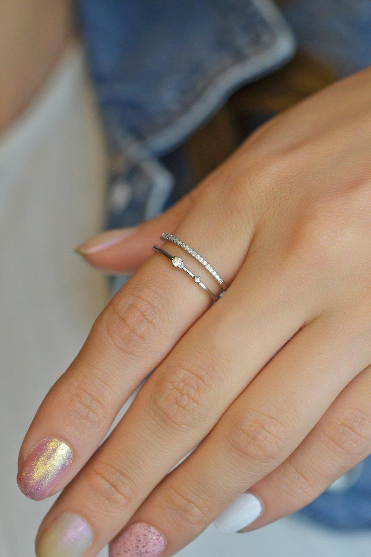 Sacce Scarves&Accessories Gümüş Renk Çift Sıra Ince Yüzük Eklem Yüzüğü