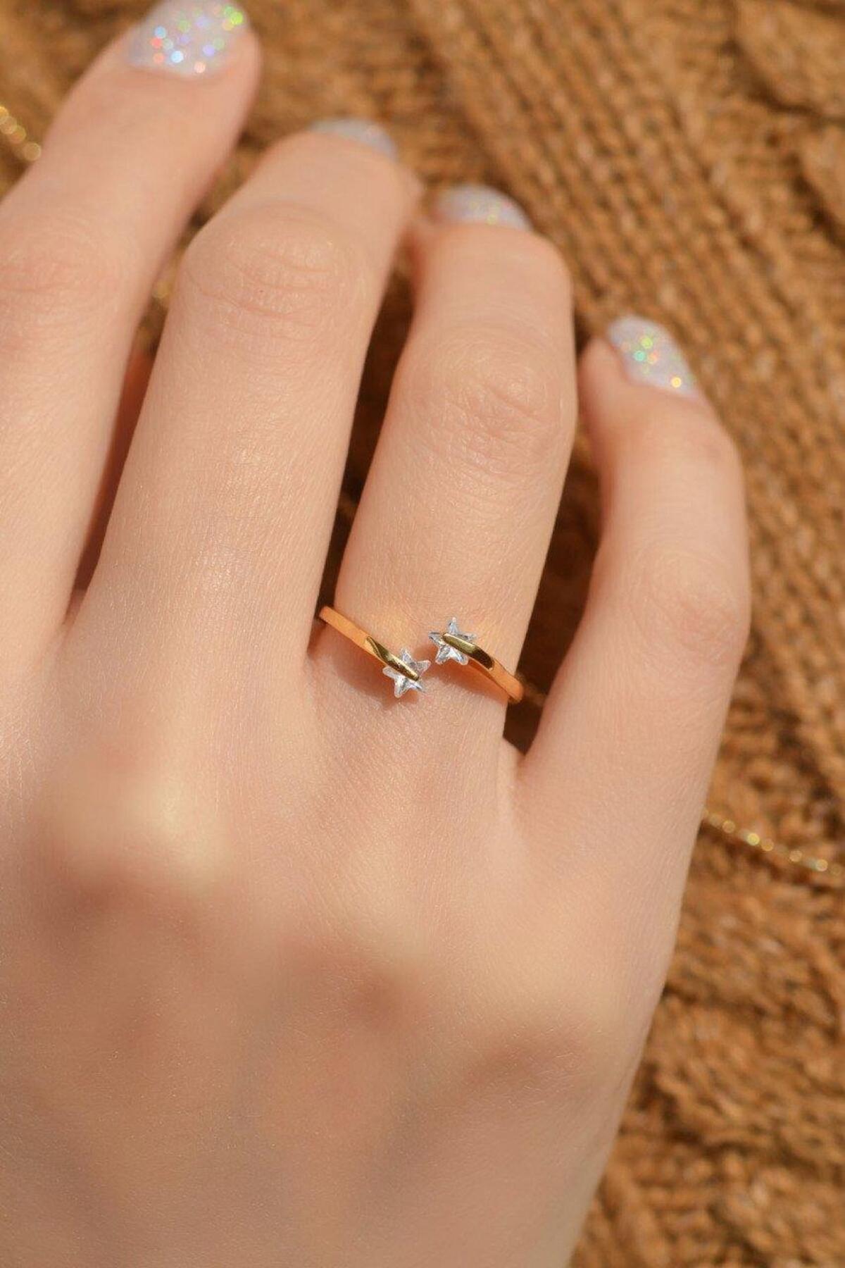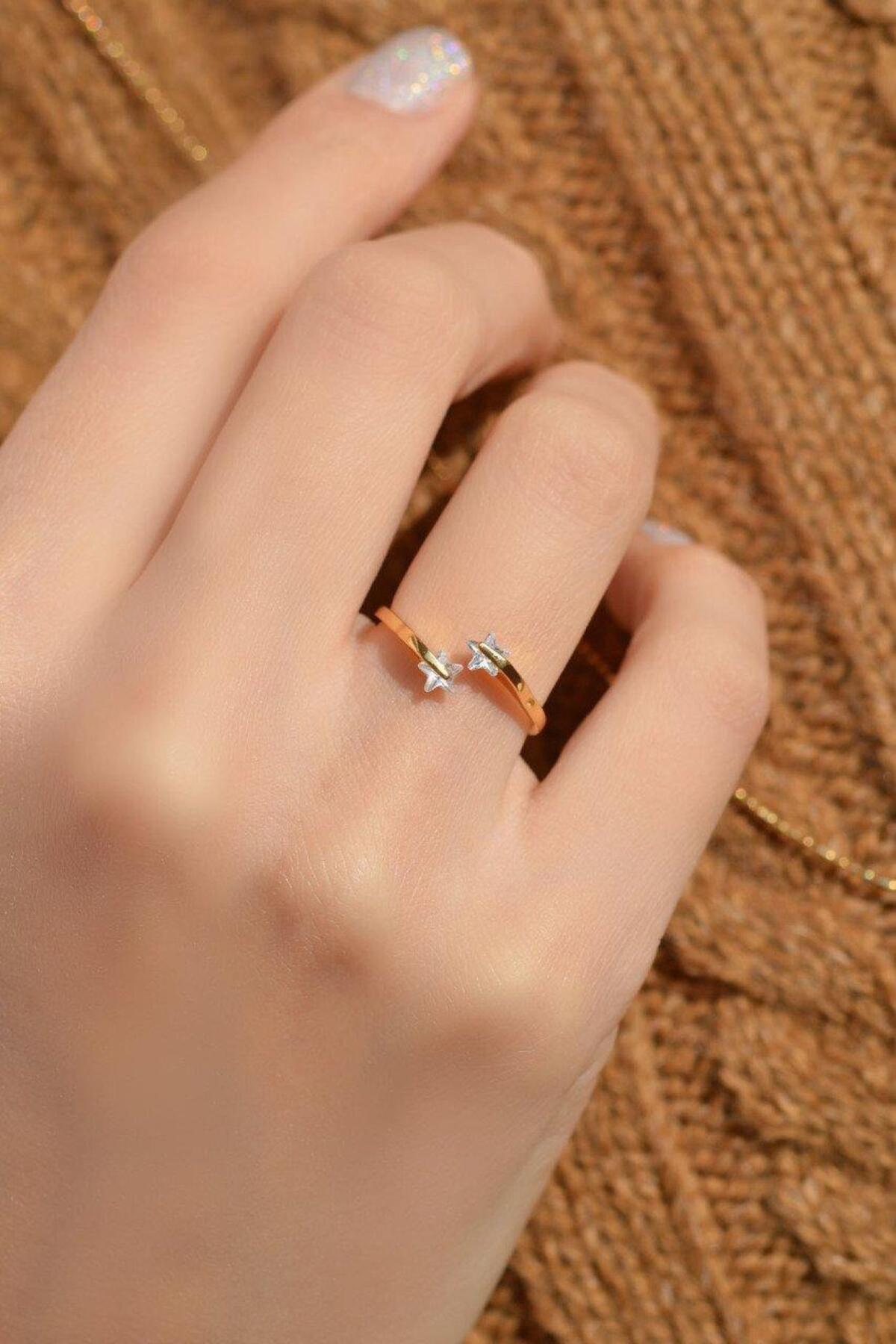 Sacce Scarves&Accessories Yıldız Model Çelik Yüzük Gold Renk