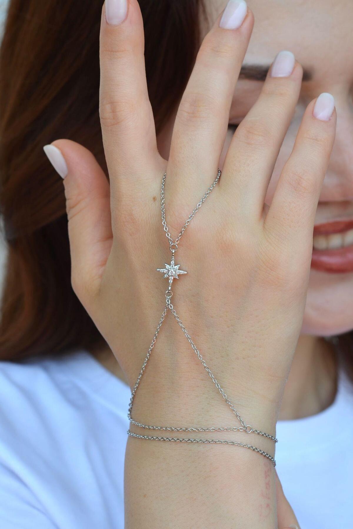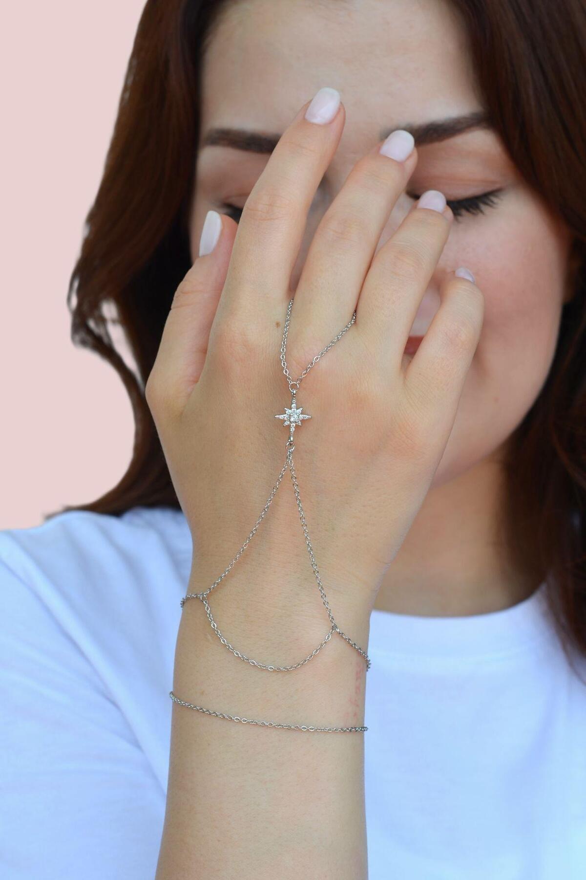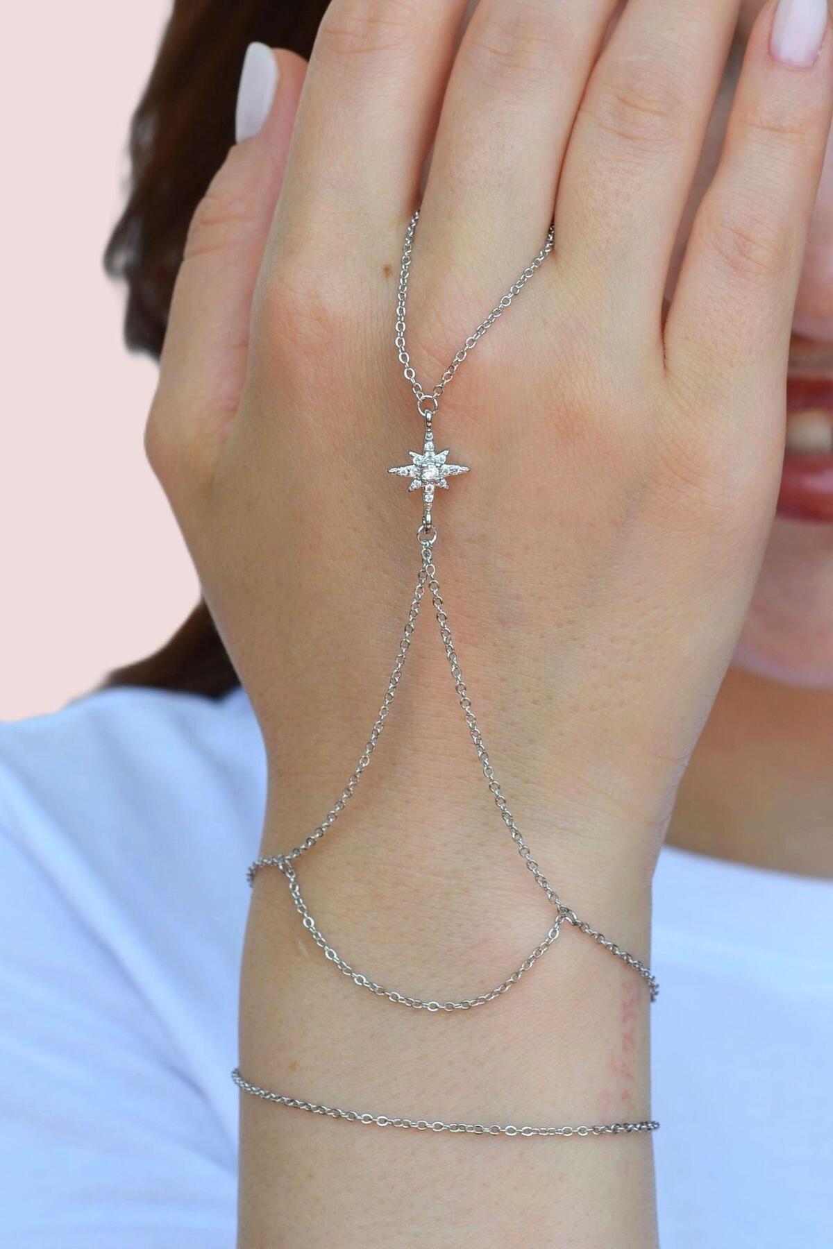 Sacce Scarves&Accessories Zirkon Taş Kuzey Yıldızlı İnce Zincirli Şahmeran Gümüş Renkli