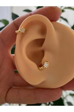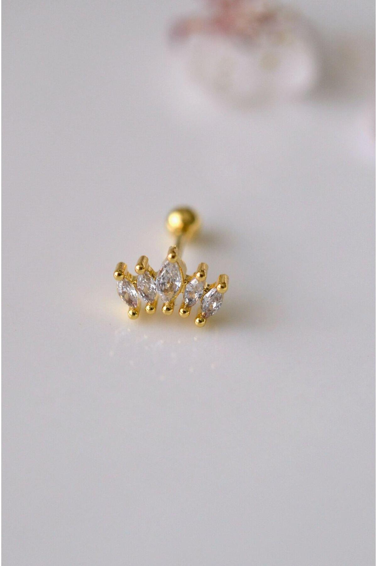 Sacce Scarves&Accessories Zirkon Taşlı Piercing Tragus Helix Kıkırdak Gold
