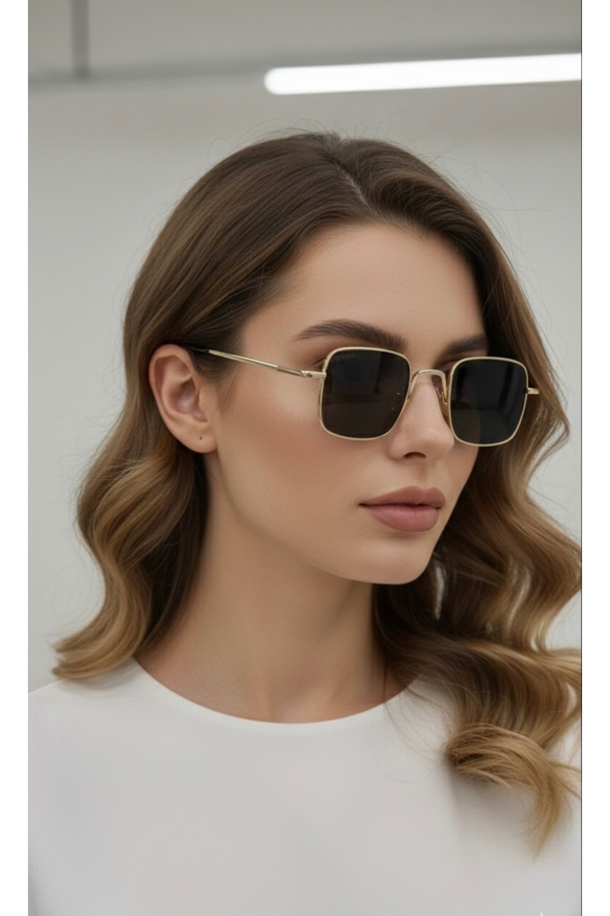 SADEN AKSESUAR Nysa Minimal İnce Çerçeveli Siyah Dikdörtgen Unisex Güneş Gözlüğü – UV400 Koruma