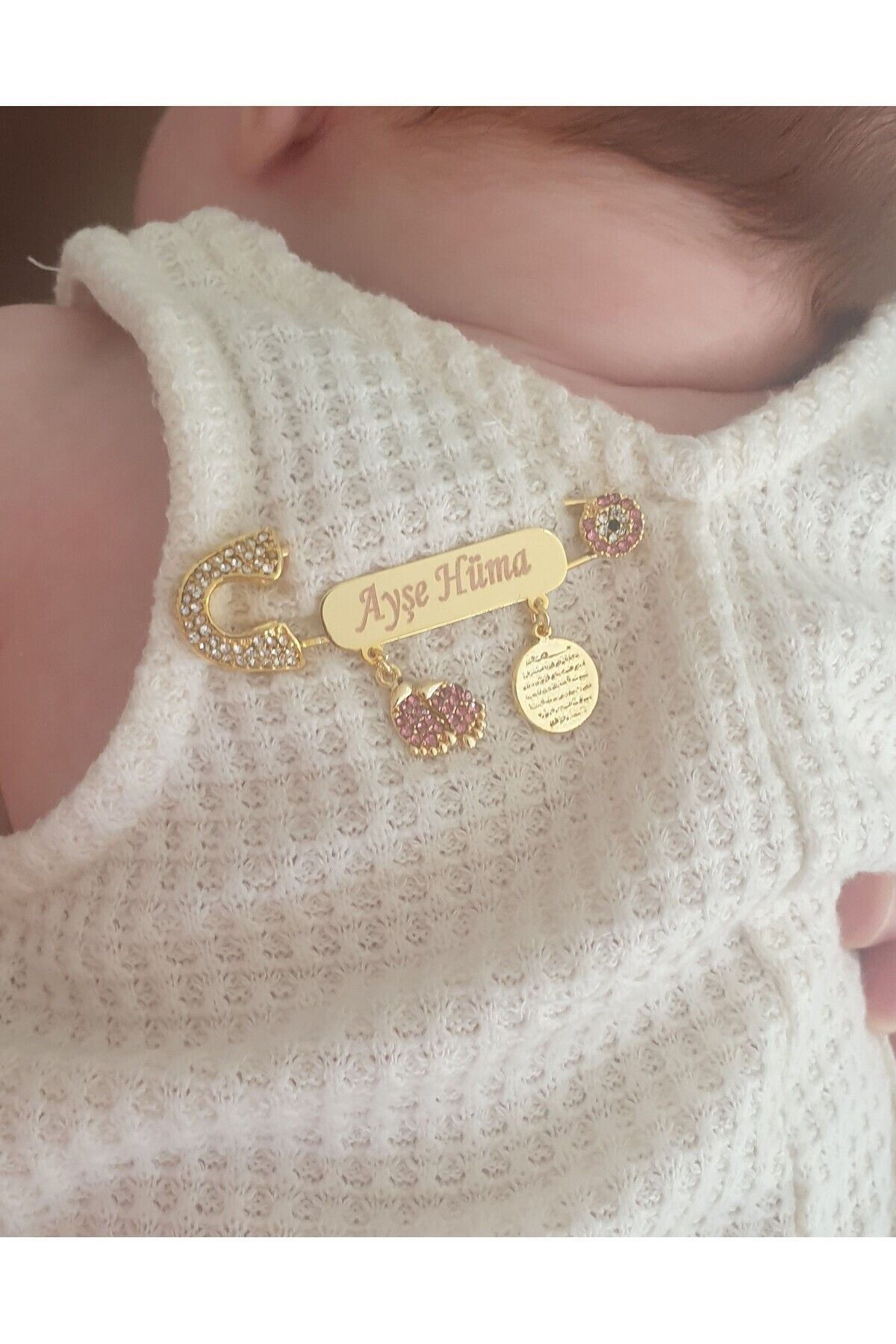 Sahi Aksesuar Kaplama Isimli Pembe Zirkon Taşlı Kız Bebek Yaka Iğnesi 5 Cm Tybkı031