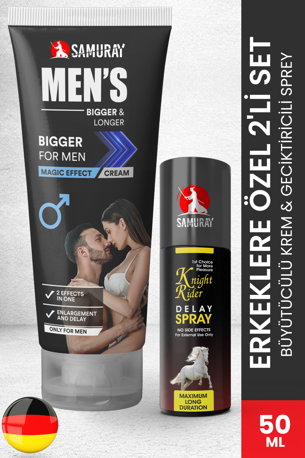 SAMURAY Alman Patentli Gecelerin Vazgeçilmez 50ml Büyütücülü Krem+30ml Geciktiricili Sprey