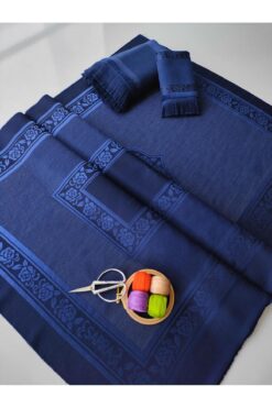 sarra 3’lü Saçaklı Etamin Koyu Seccade Seti – Lacivert
