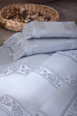 sarra 4’lü Saçaklı Etamin Bohça Seti – Gri