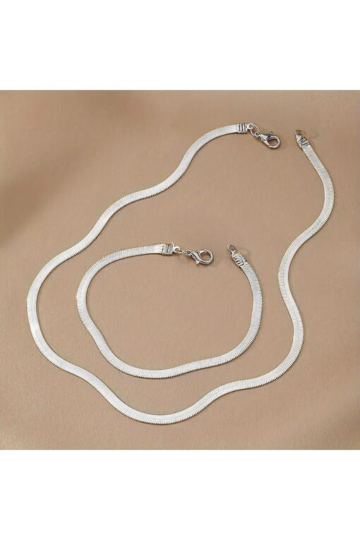 Satürn Silver Kuyumculuk Çelik Yassı Zincir Italyan Çelik Kolye Ve Bileklik Set 316l Kararmaz Çelik Unisex