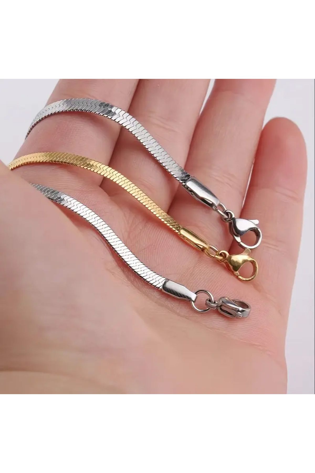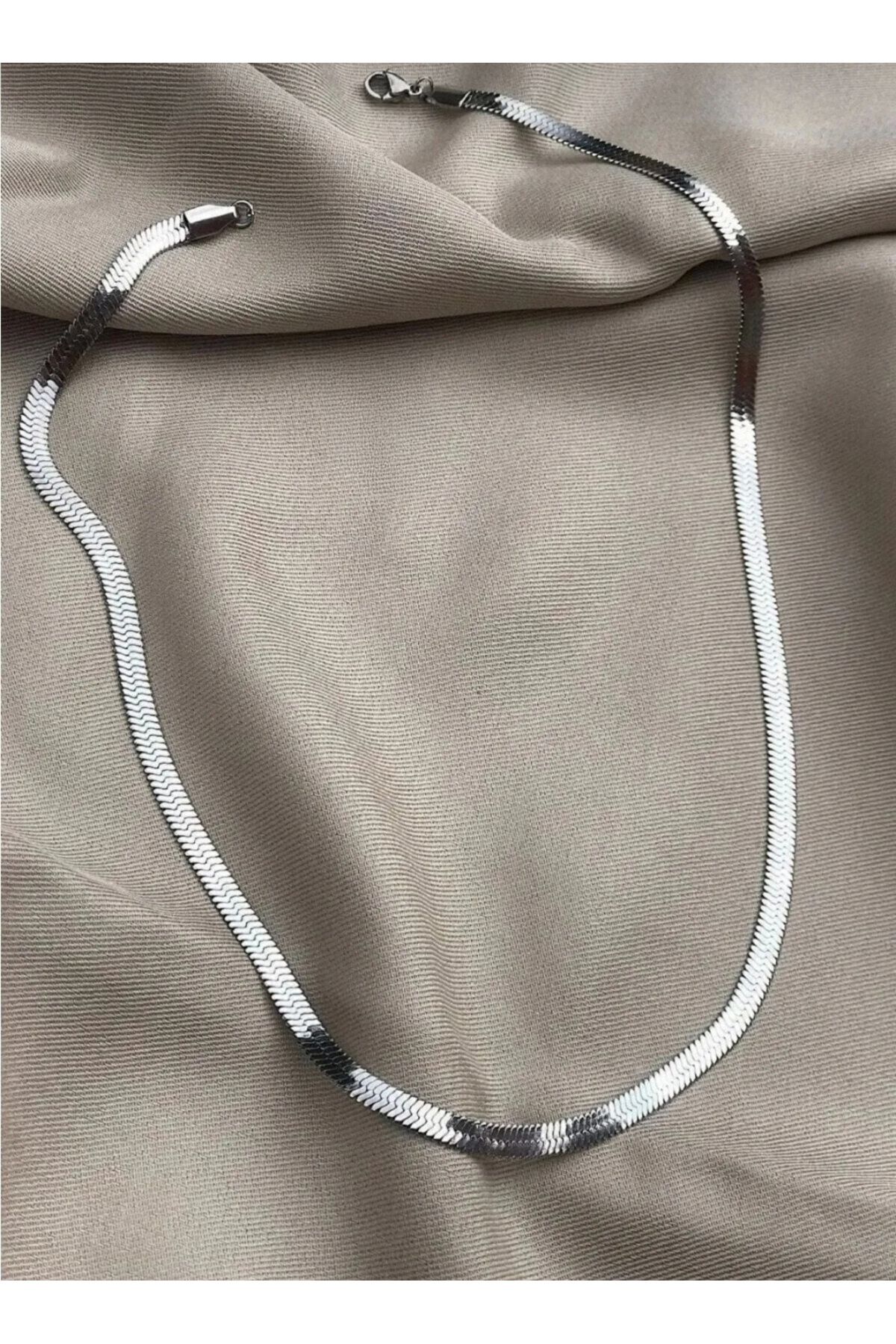 Satürn Silver Kuyumculuk Yassı Zincir İtalyan Çelik Kolye 316 L Çelik Kararma Yapmaz