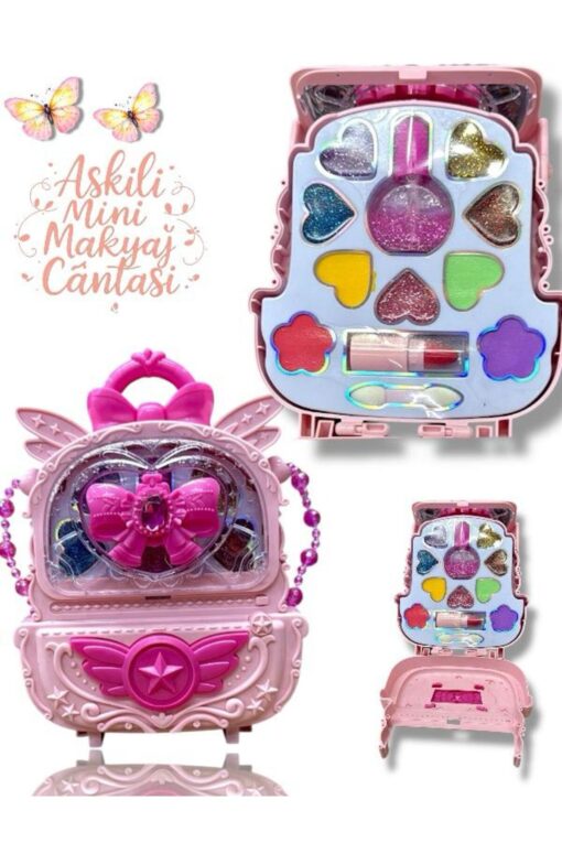 SAZE KELEBEK MODEL SÜRÜLEBİLİR ASKILI MİNİ MAKYAJ SETİ OYUNCAK OYUN SETİ BONCUK ASKILIYLA BIRLIKTE