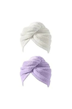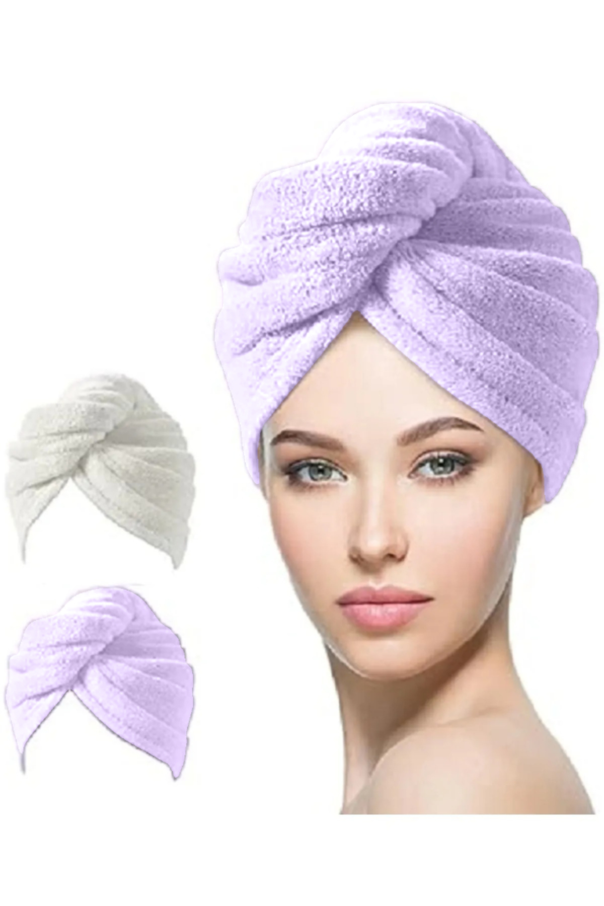 SB SizinBazar 2 Adet Pamuklu Saç Kurulama Bonesi Baş Havlu Saç Bonesi- Pamuklu Saç Bonesi-lila-beyaz