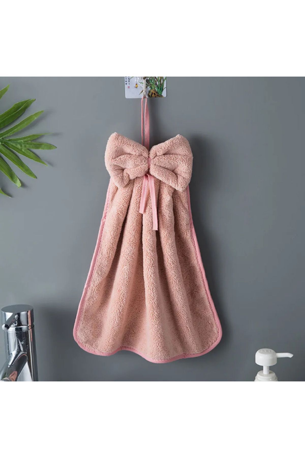 SB SizinBazar Pembe Fiyonklu El Havlusu- Askılı Sevimli Havlu – 100% Pamuklu Banyo Havlusu 40 * 40 Cm