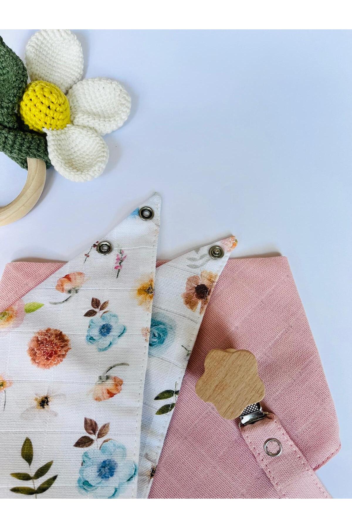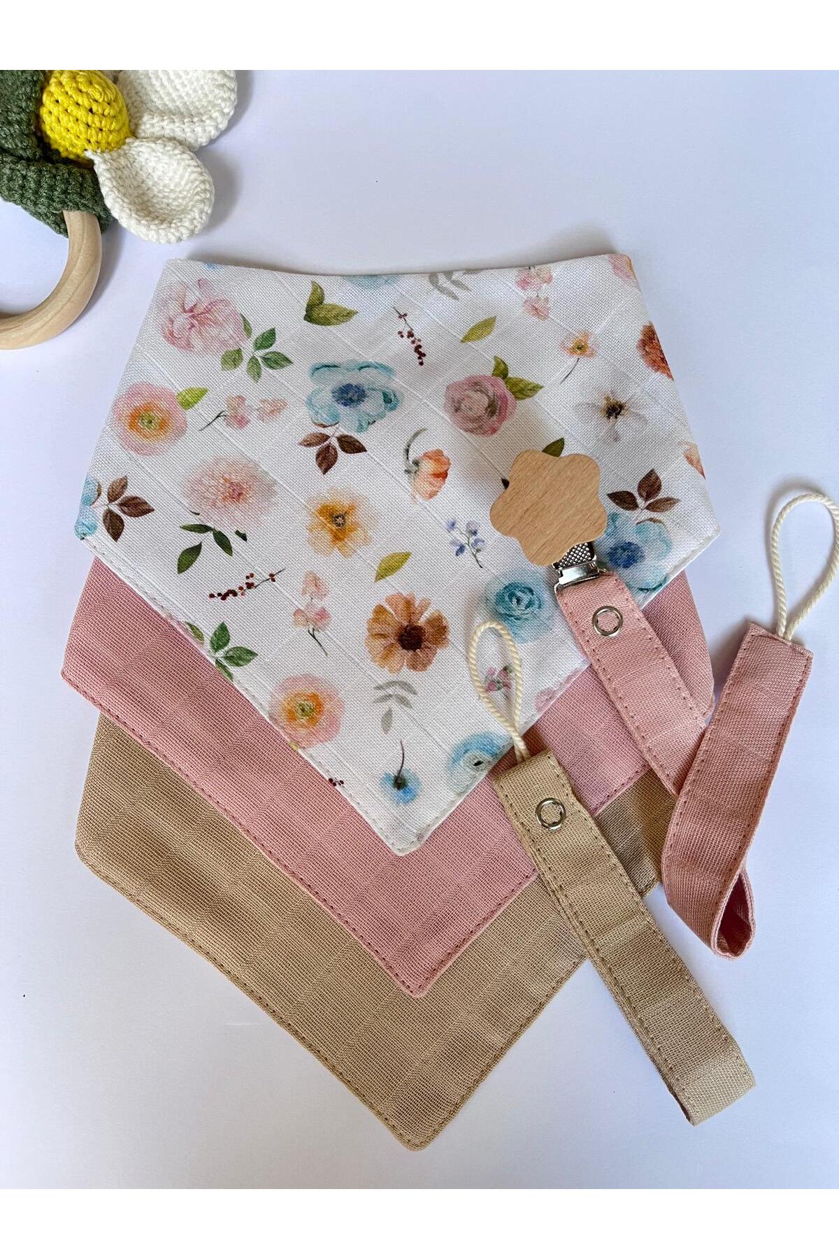 GLORY BABY 3’lü Set Bebek Emzik Askısı %100 Pamuk Çiçek Desenli