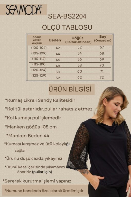 Seamoda Büyük Beden Degaje Yaka Kolu Pul Işlemeli Abiye Bluz-siyah en ucuz fiyata kozmetikara.com sitemizden sipariş verebilirsiniz.