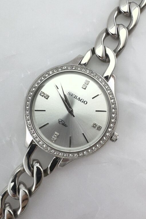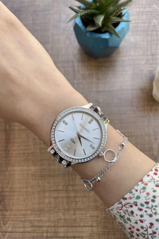 Alarm: Yok Cam Tipi: Mineral Cinsiyet: Kadın Ekran Tipi: Analog Kadran Rengi: Metal Kadran Şekli: Yuvarlak Kadran Taşı: Var Kasa Materyali: Çelik Kasa Rengi: Metal Kasa Taşı: Var Kordon Materyali: Çelik Kordon Rengi: Metal Kronometre: Yok Marka: Sebago Mekanizma: Pilli Suya Dayanıklılığı: 3 ATM Takvim: Yok Kasa Çapı: 38 mm